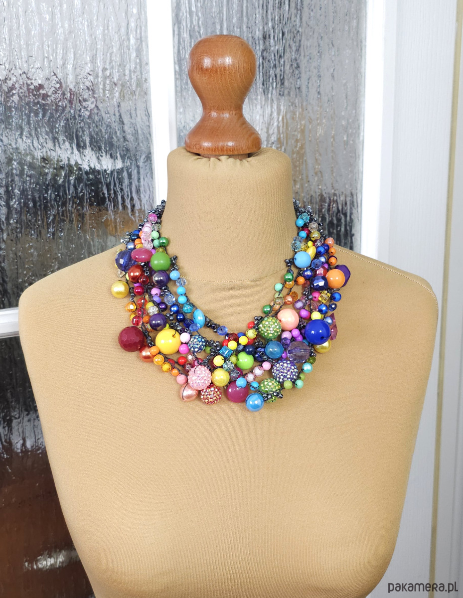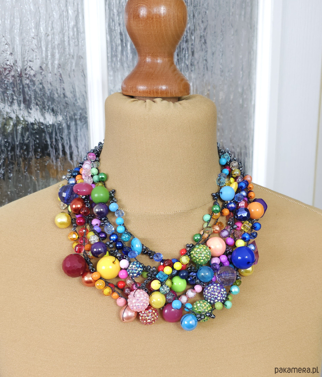 Ten naszyjnik to idealne ucieleśnienie "artystycznego bałaganu", gdzie bogactwo form, faktur i intensywnych barw tworzy harmonijną, lecz dynamiczną całość.