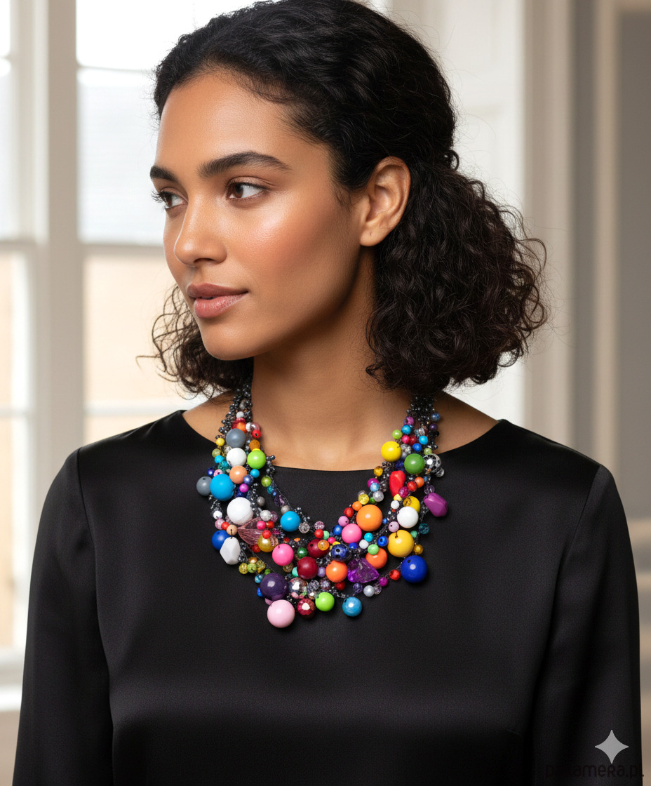 - Typ naszyjnika: wielorzędowy, koralikowy, statement