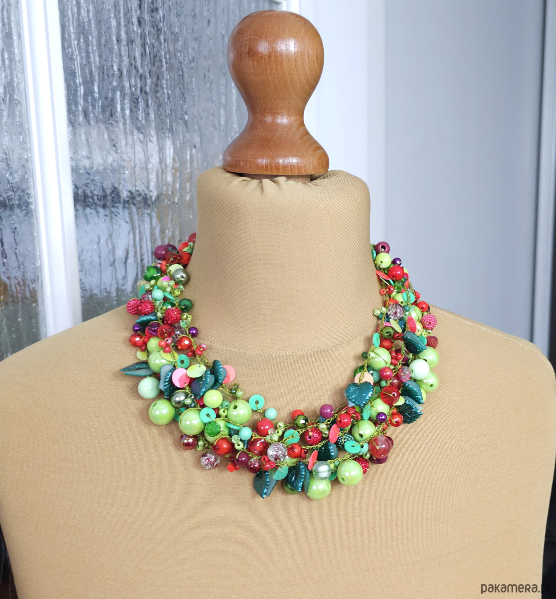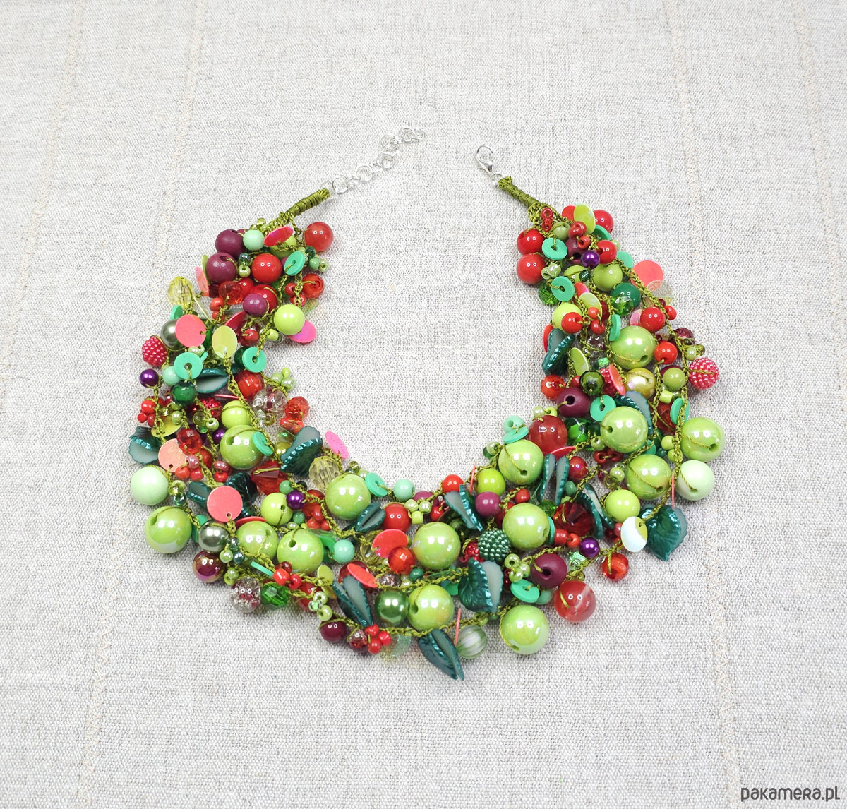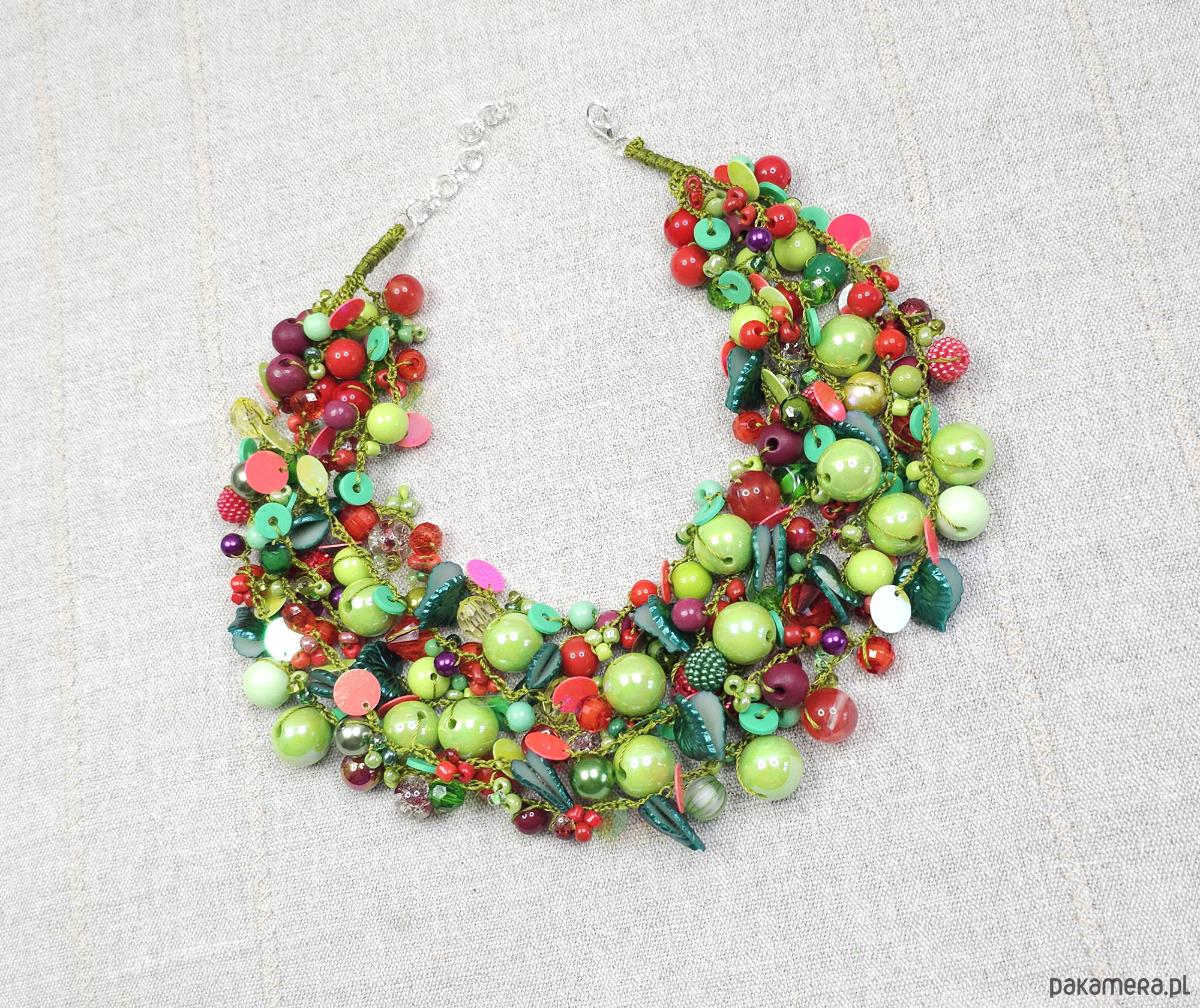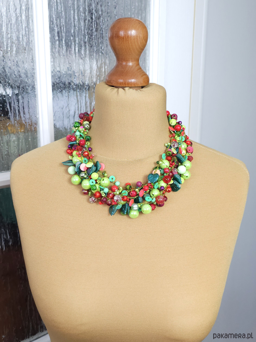 6971 Wielobarwny naszyjnik statement - Soczysta Zieleń i Czerwień