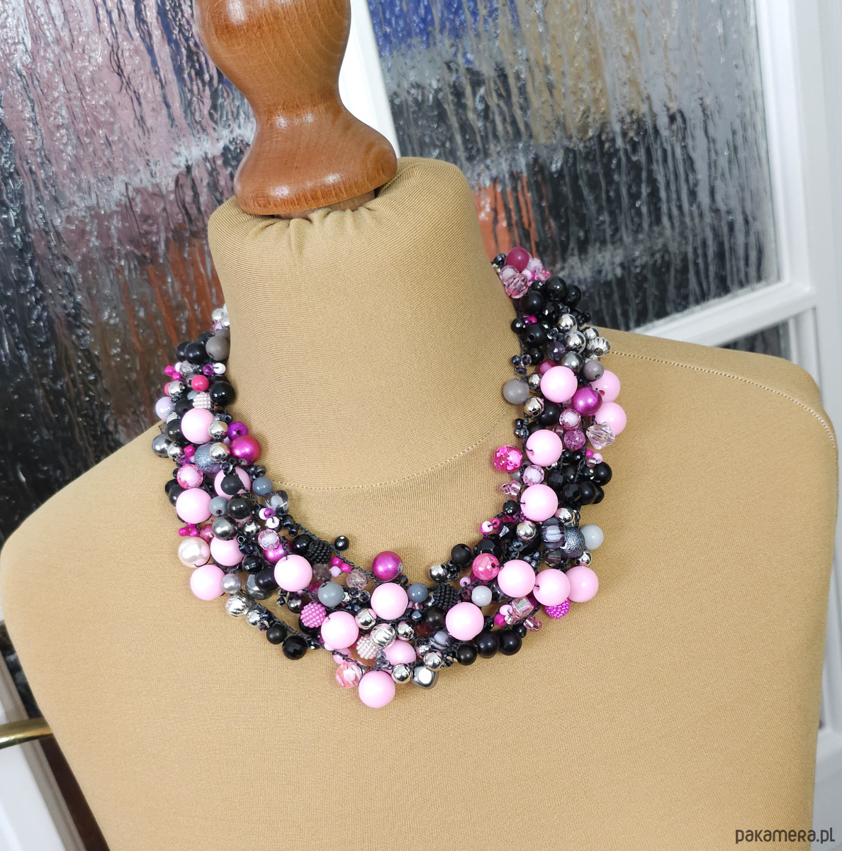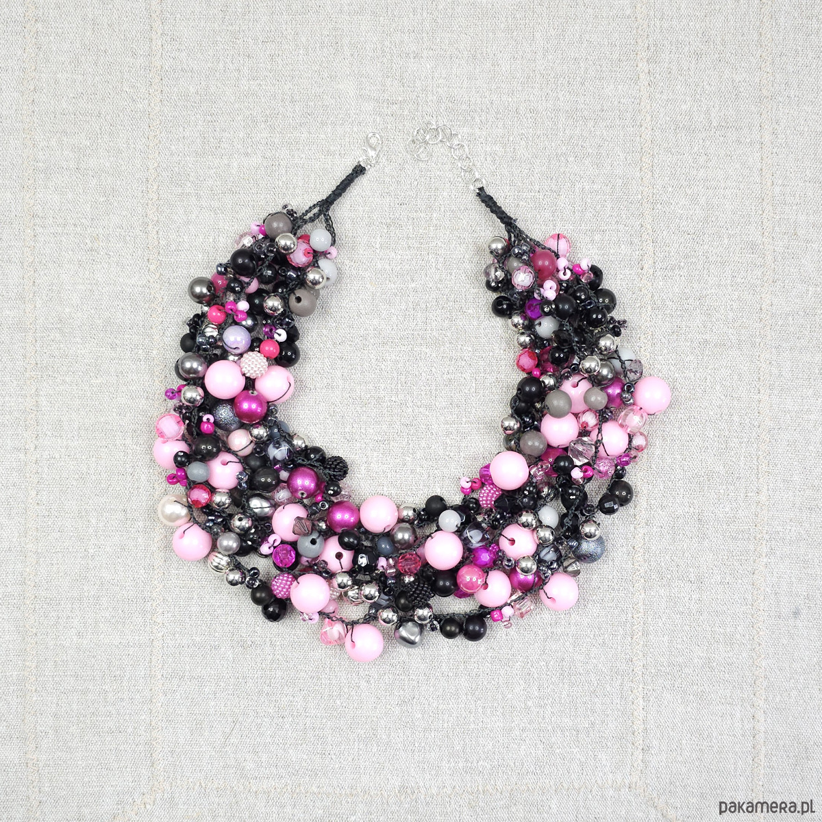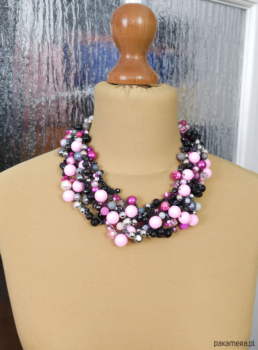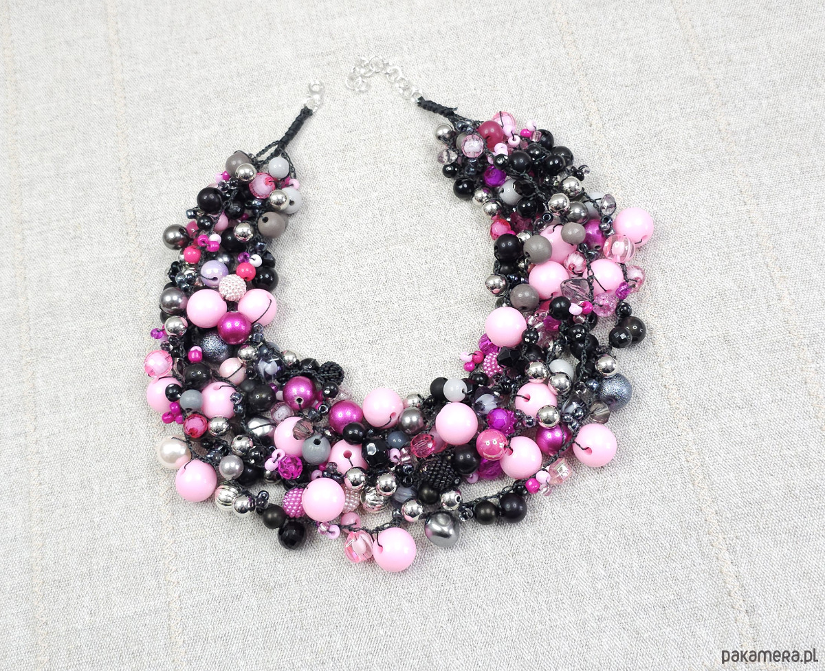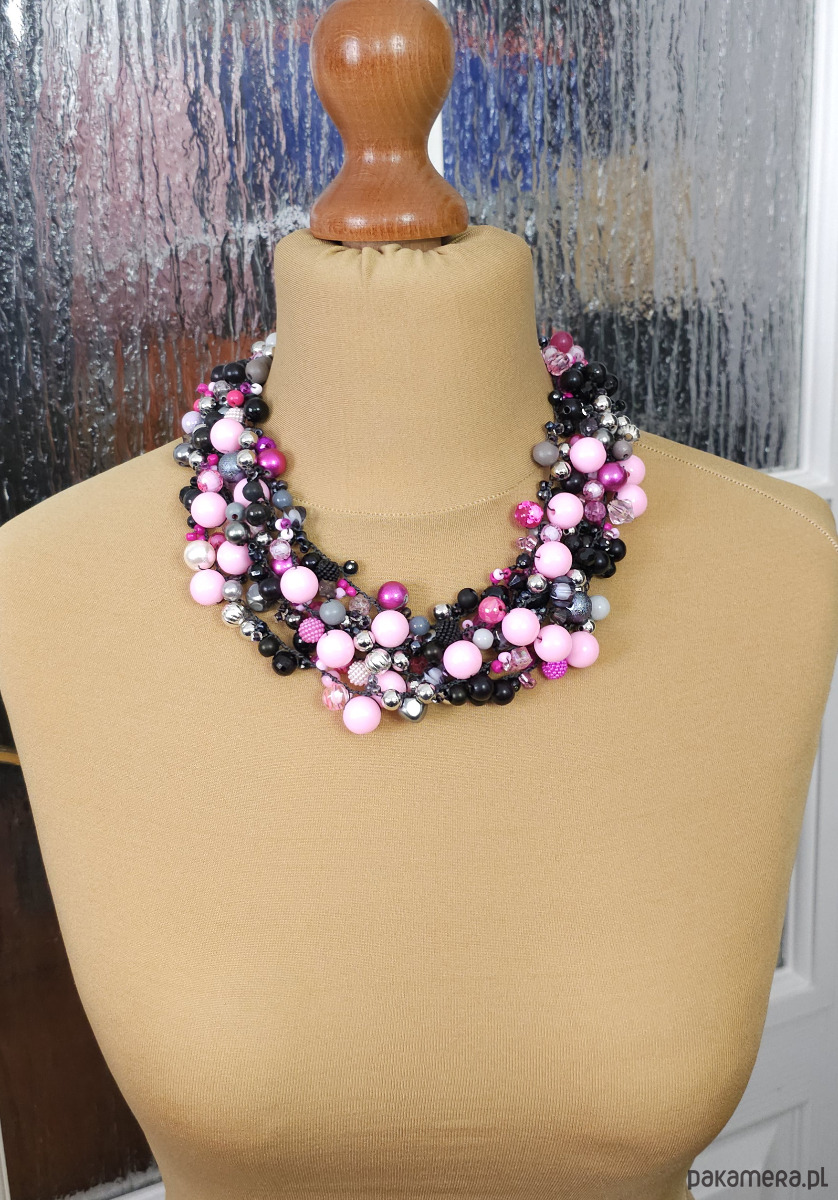 6987 Naszyjnik handmade: mix różu, szarości i czerni