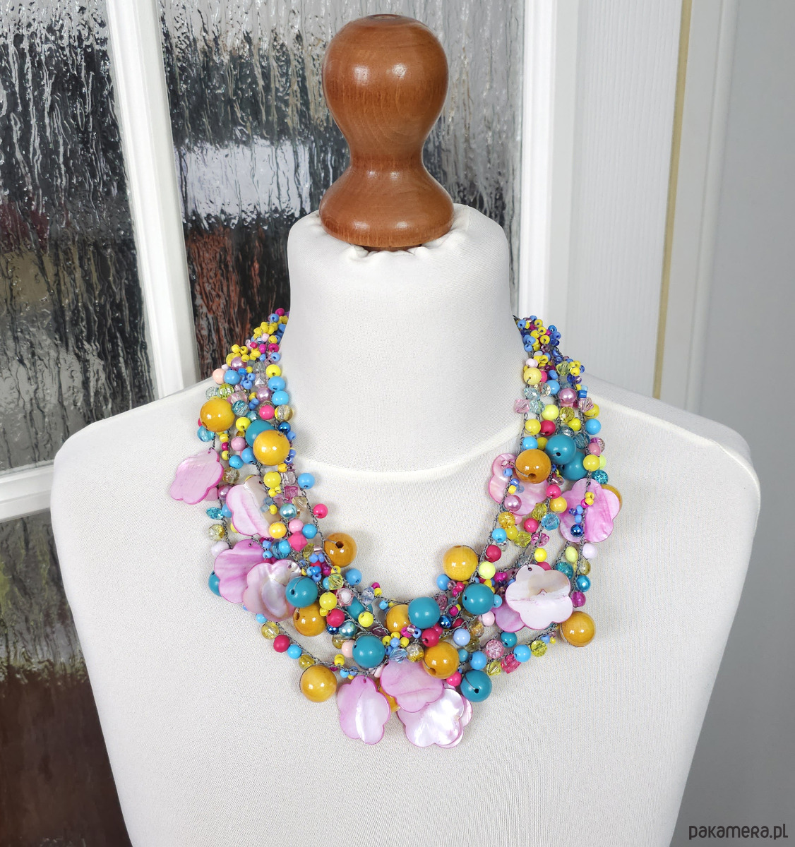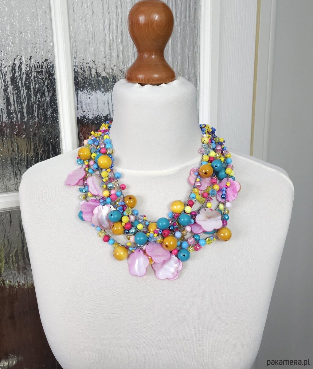 - Typ naszyjnika: wielorzędowy, koralikowy, statement
