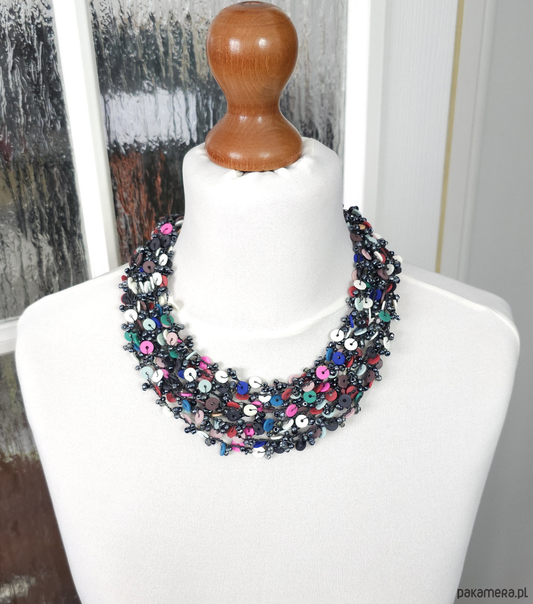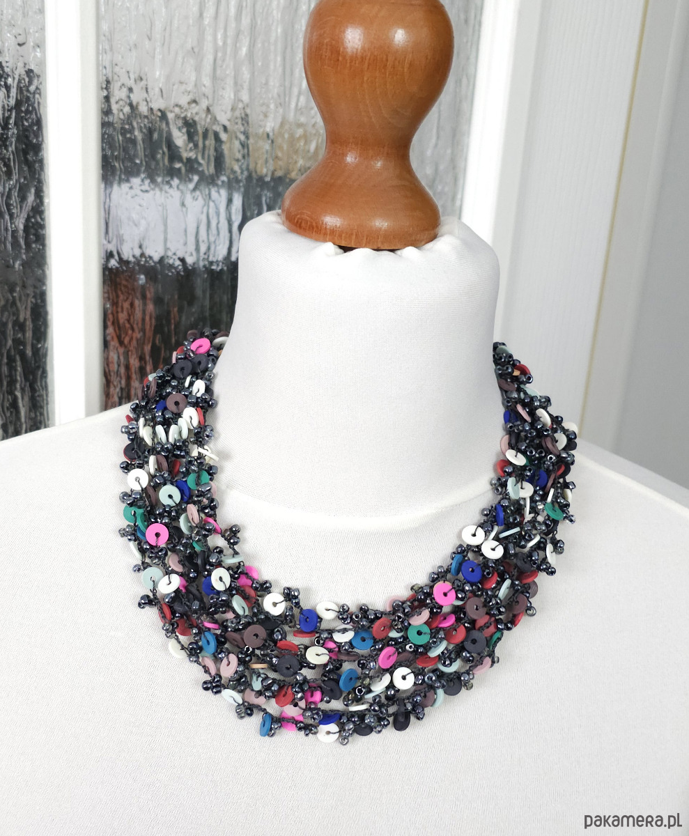 - Typ naszyjnika: wielorzędowy, koralikowy, statement
