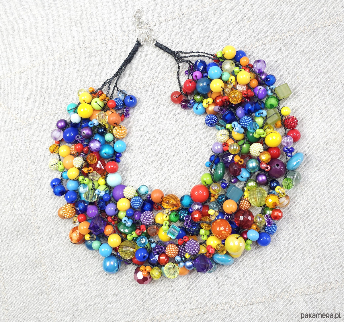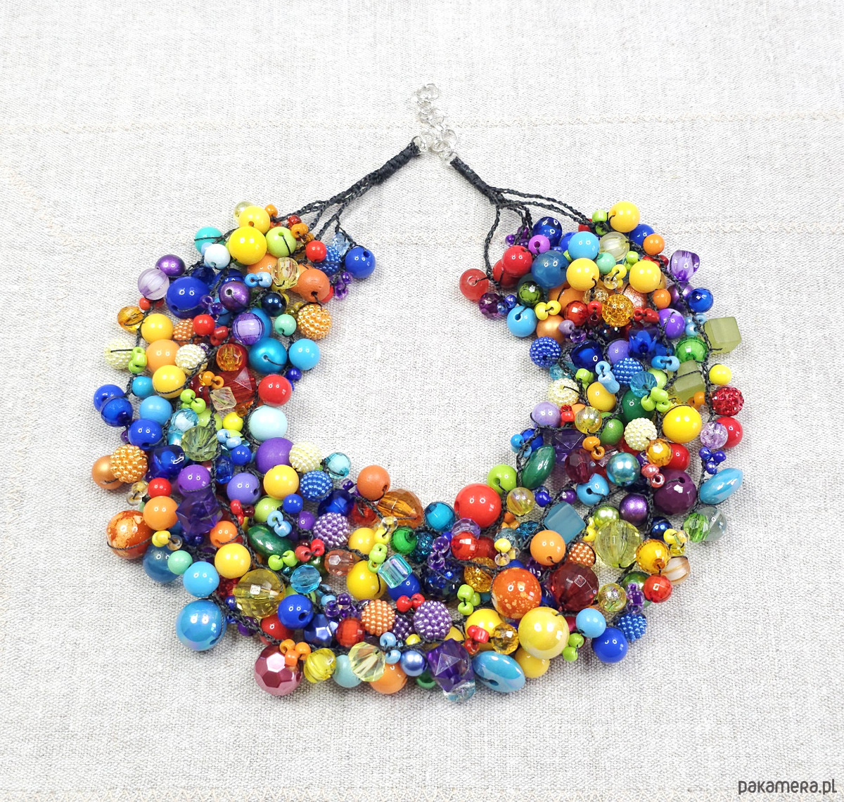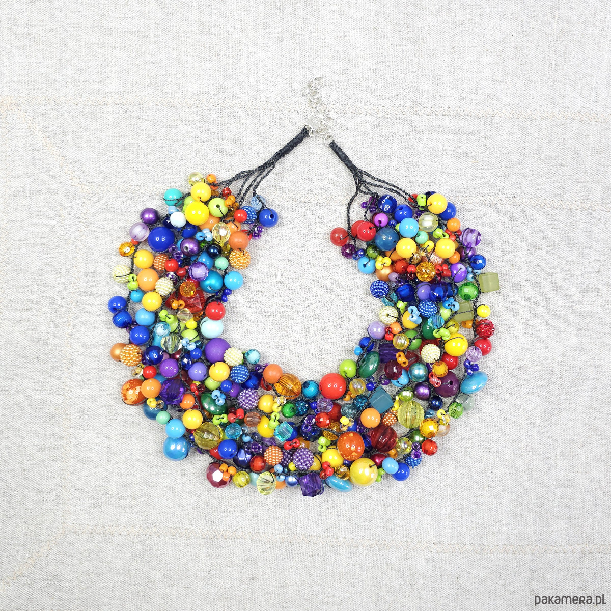 Bogaty naszyjnik wykonany z mieszanki koralików w pełnej palecie barw.