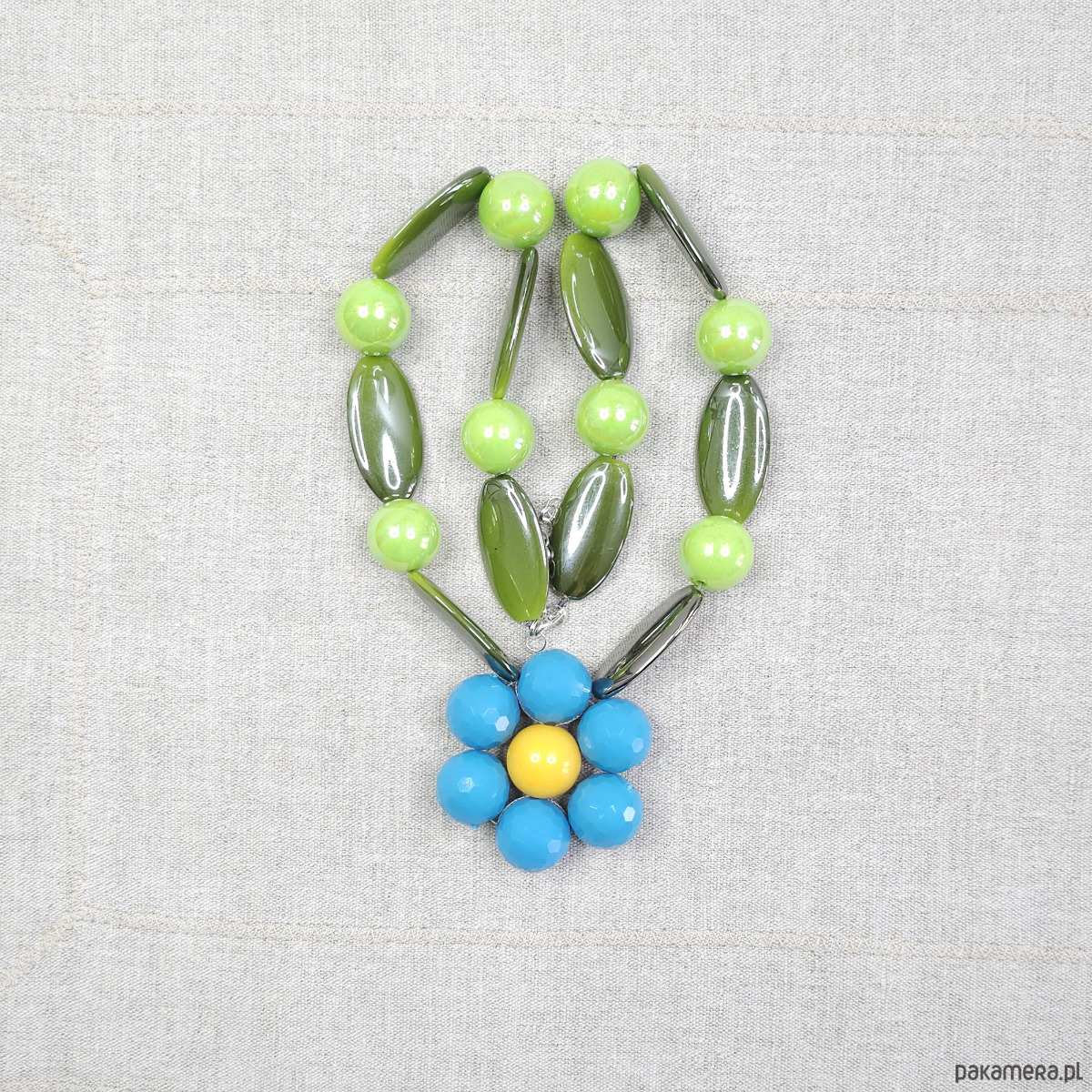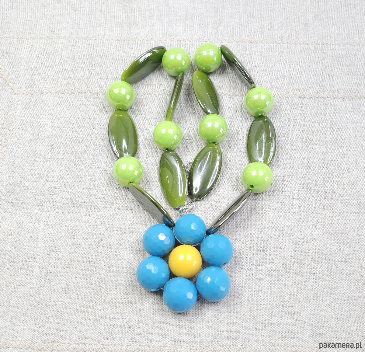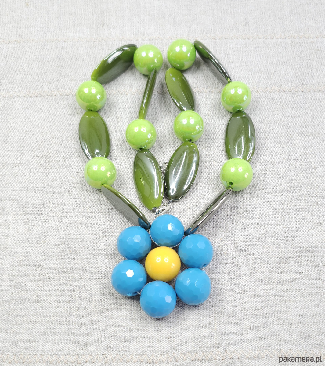 Ten unikatowy naszyjnik to połączenie odważnych kolorów