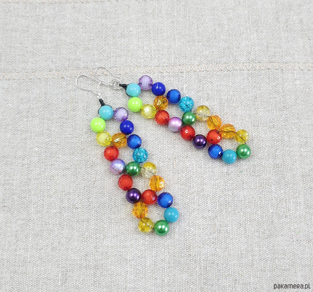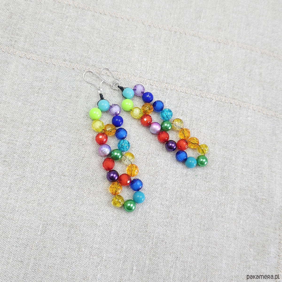Te kolczyki to czysta radość zamknięta w formie biżuterii. Wykonane z wielobarwnych koralików, układają się w efektowny, niemal geometryczny wzór, który przyciąga wzrok i dodaje energii każdej stylizacji. Są lekkie, radosne i idealne dla osób, które kochają wyróżniać się z tłumu.
