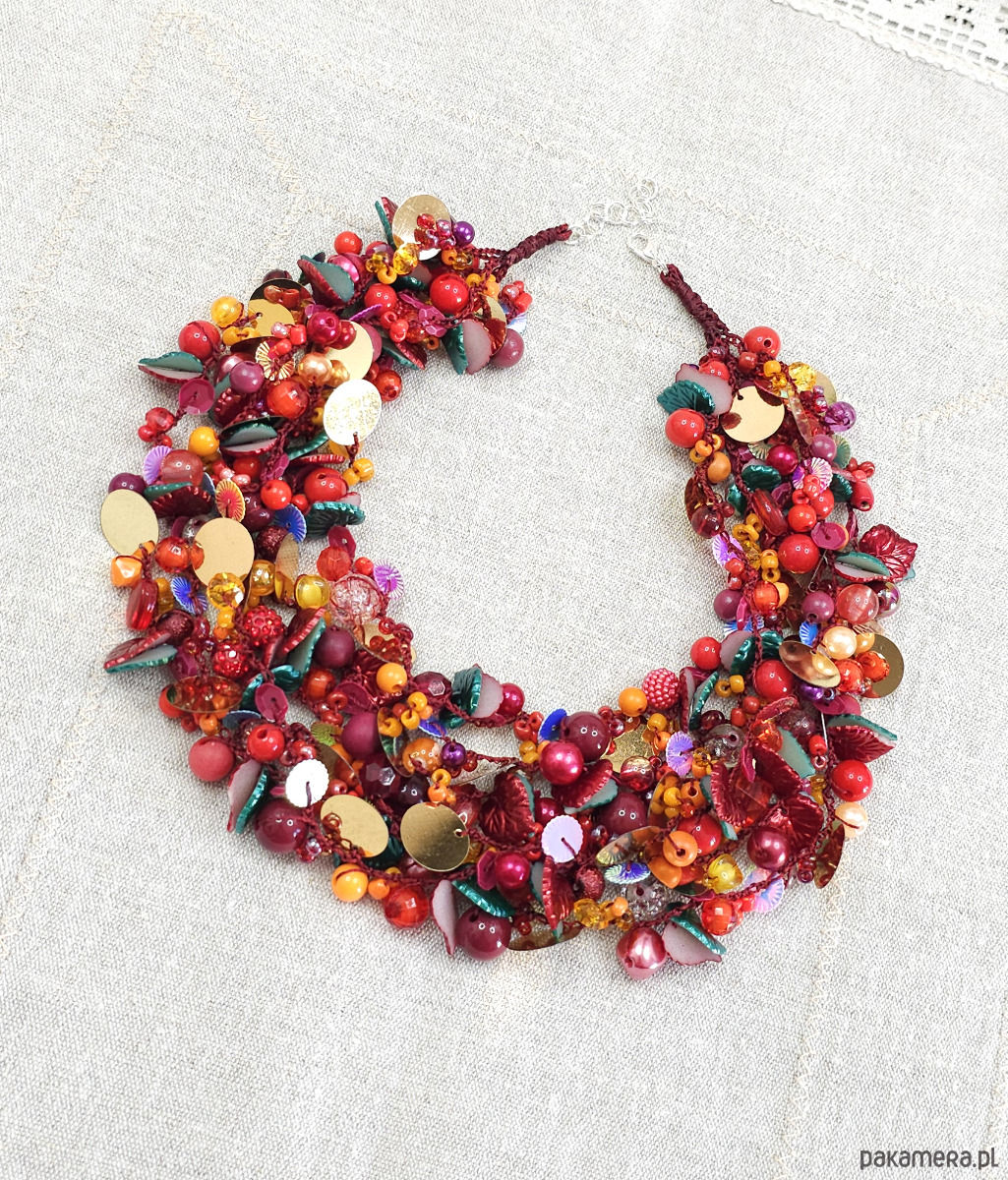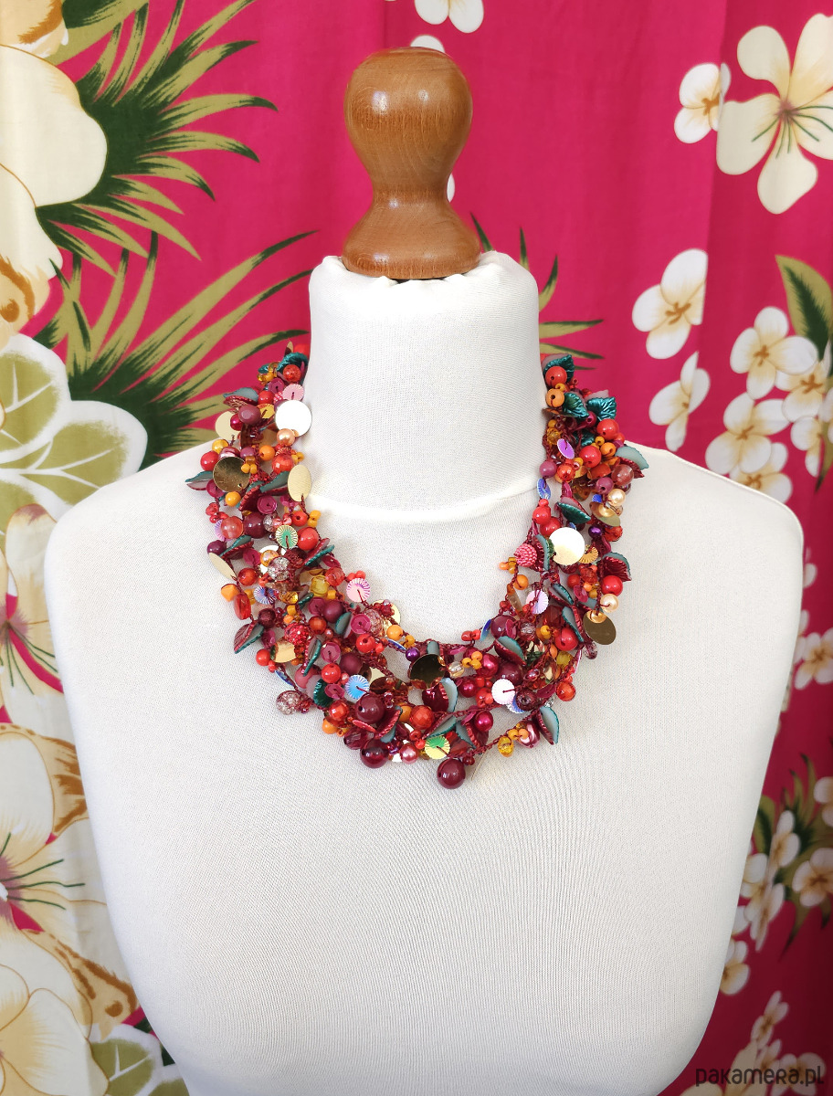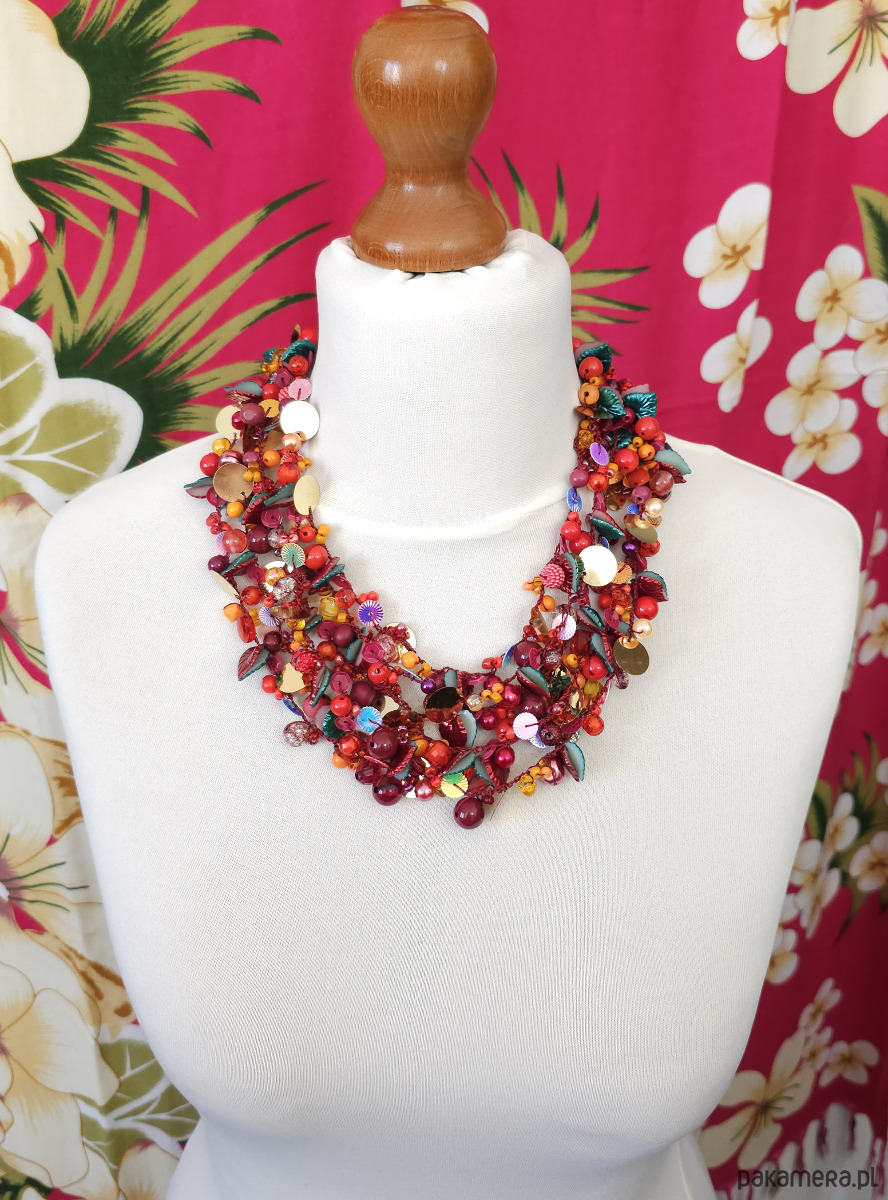 - Typ naszyjnika: wielorzędowy, koralikowy, statement