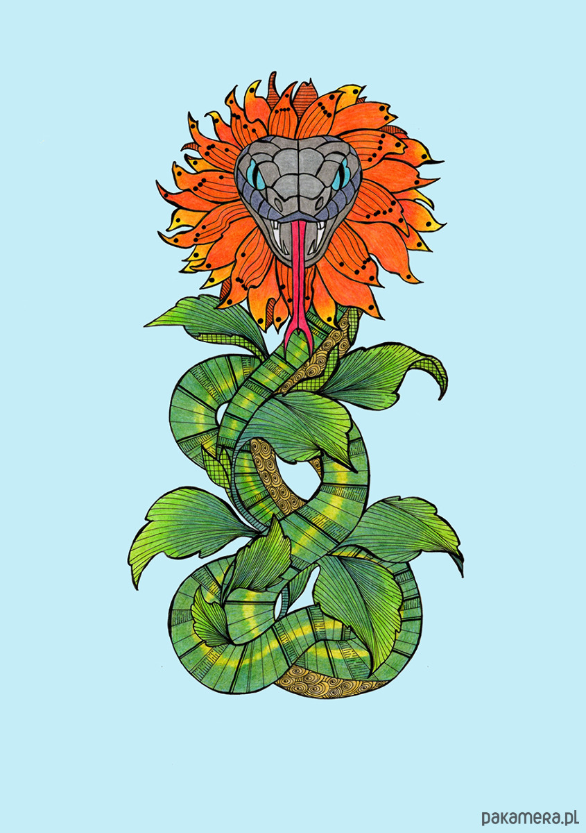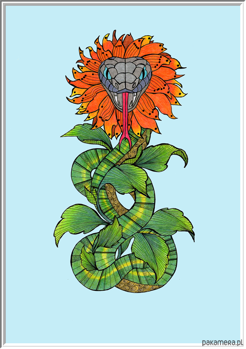 To roślina, która zamiast łagodnego kielicha, ukazuje swoje groźne, wężowe oblicze, a jej łodyga oplata przestrzeń niczym żywe stworzenie.
