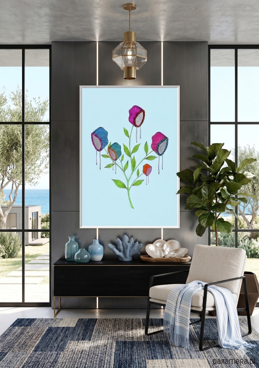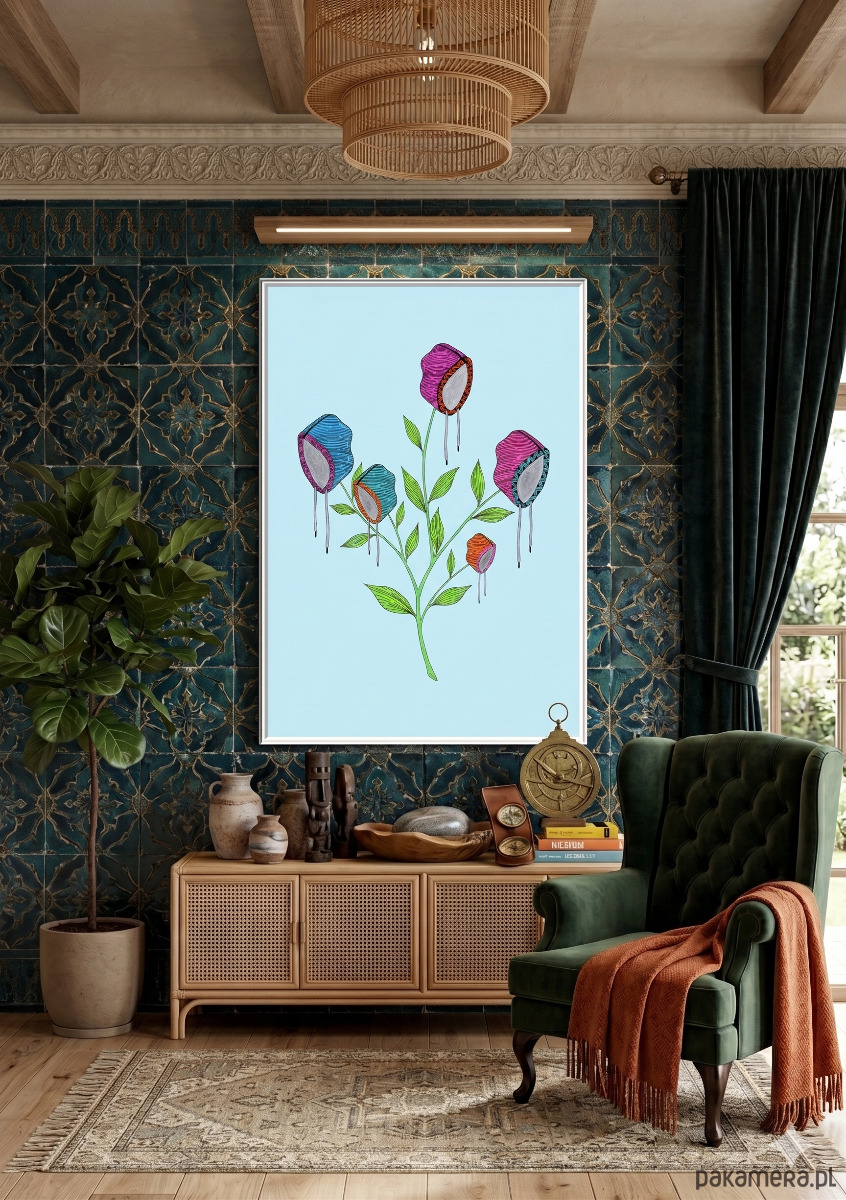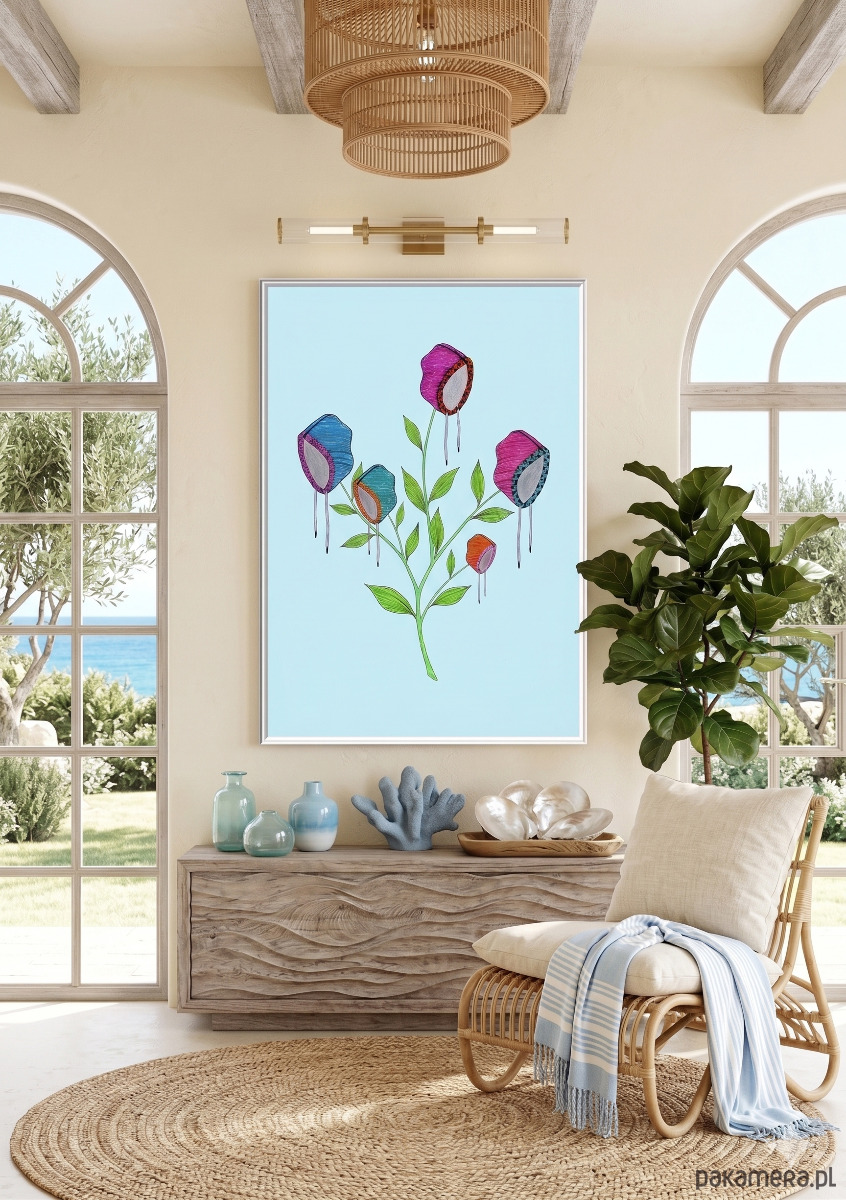 Najlepiej zaprezentuje się w jasnej, drewnianej ramie, która podkreśli jego delikatność.