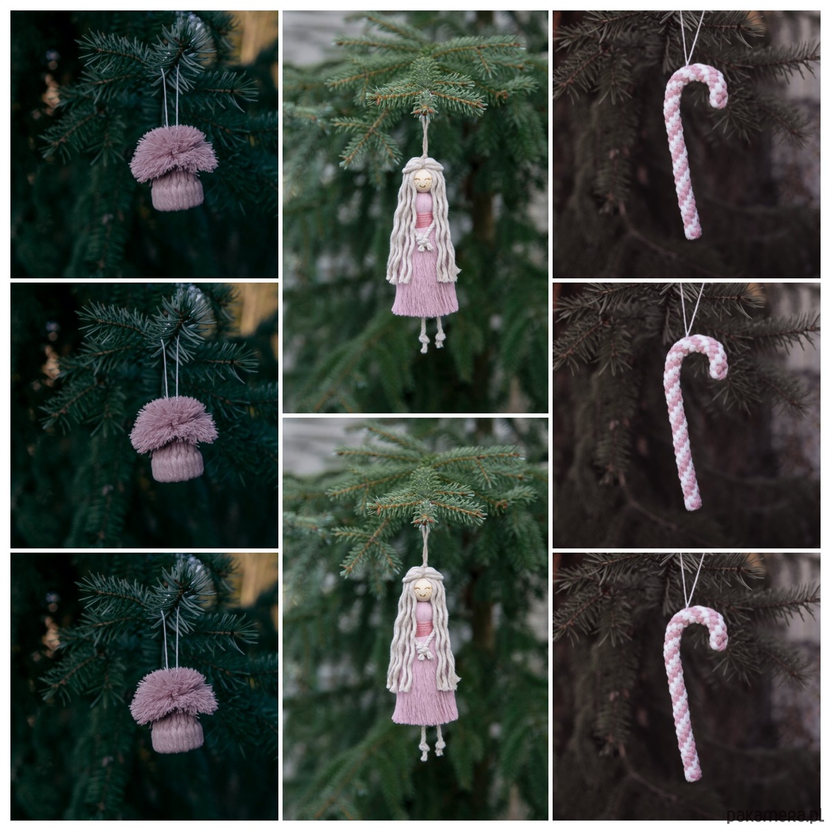 8 dekoracji na choinkę Biało fioletowe / Dostępne od ręki