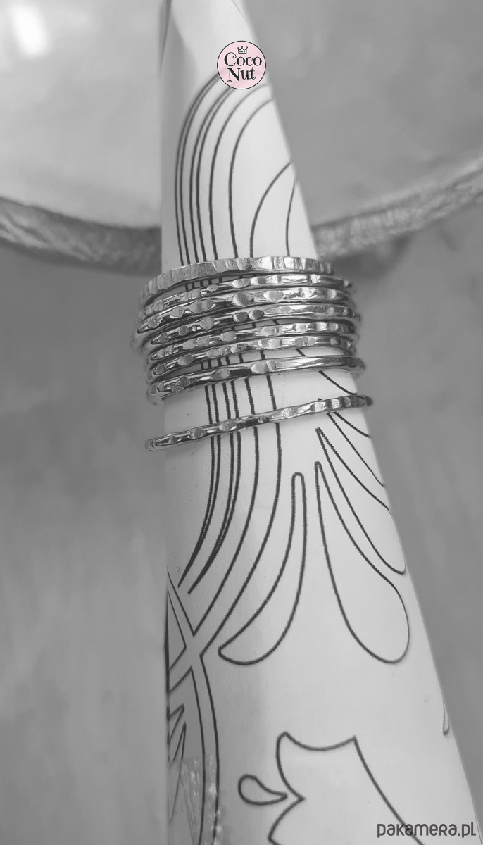 8 obrączek TIDE srebro, fakturowane