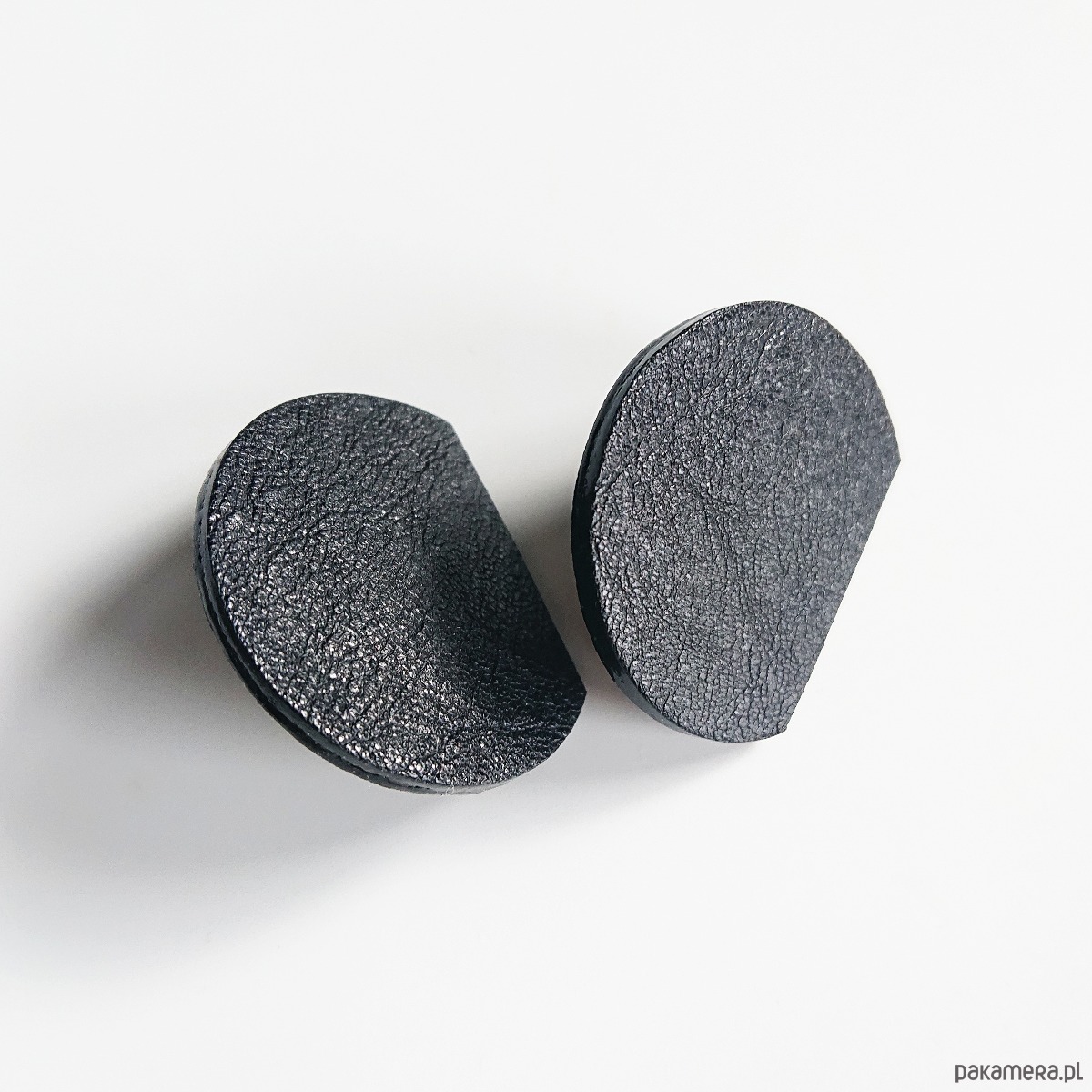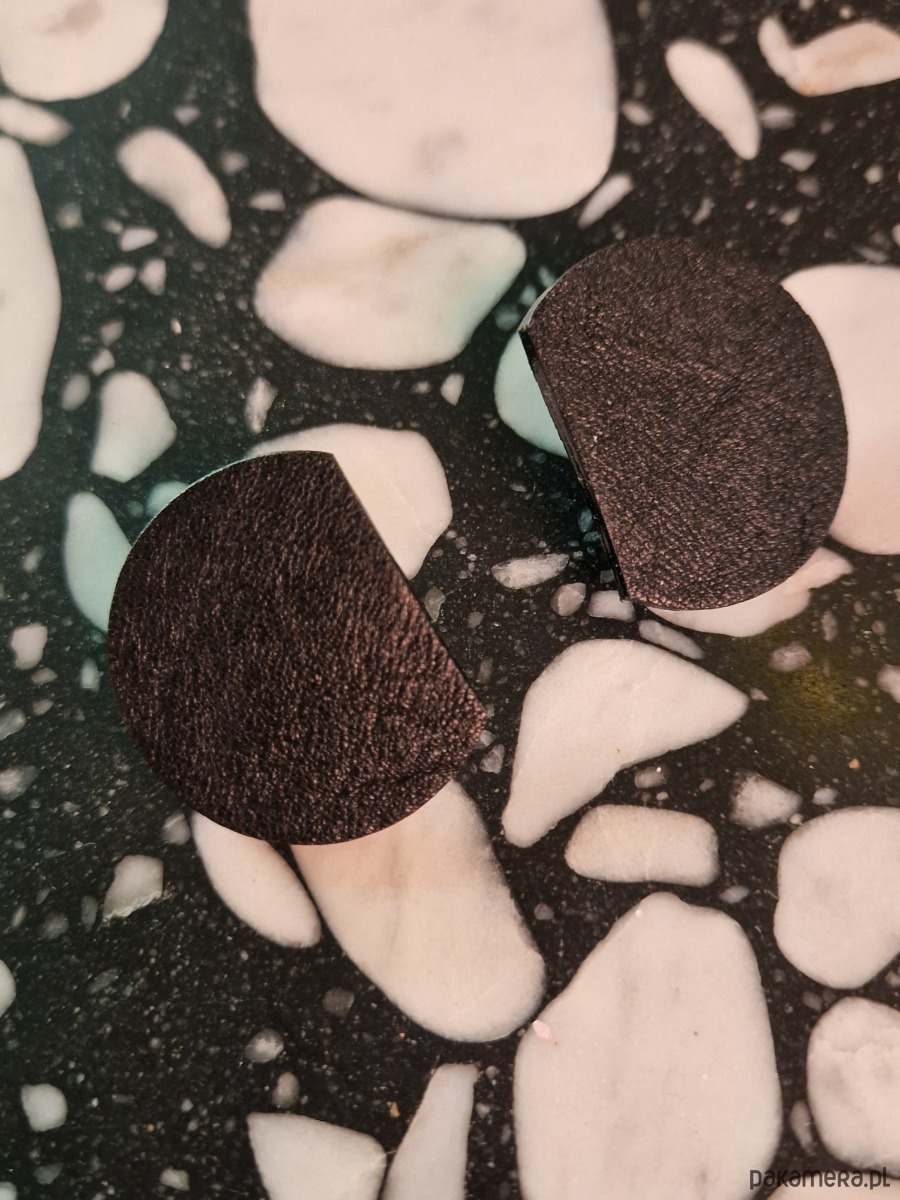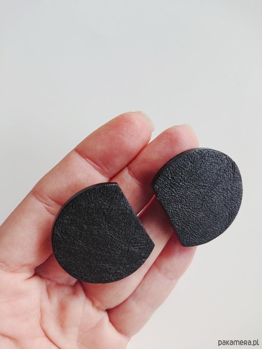 Geometryczne kolczyki wykonane ze skóry w kolorze czarnym.