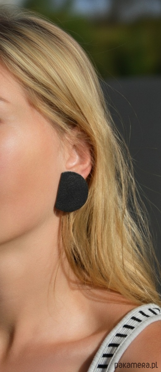 Geometryczne kolczyki wykonane ze skóry w kolorze czarnym.