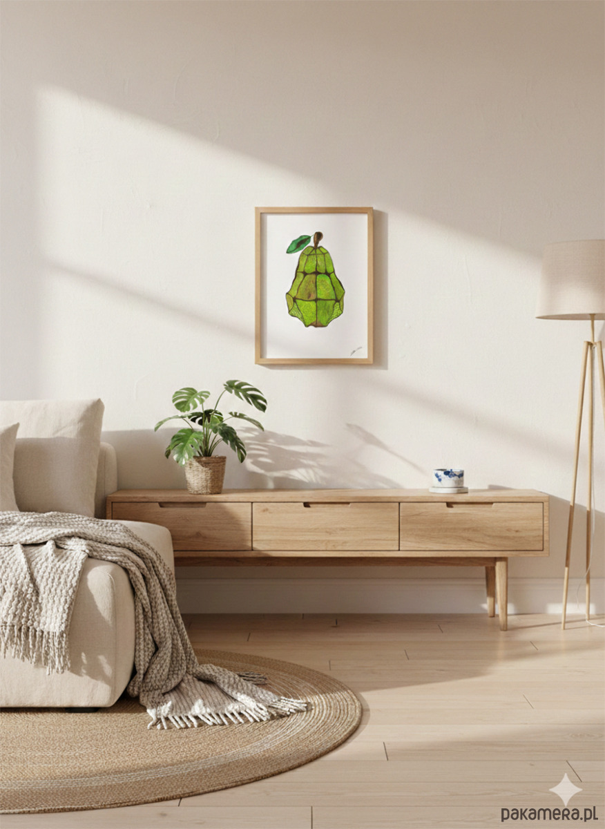 Doskonale pasuje do nowoczesnej kuchni, jadalni lub salonu w stylu eko. Świetnie komponuje się z naturalnymi materiałami, takimi jak drewno czy len. Idealna jako element większej serii owocowej na ścianie.