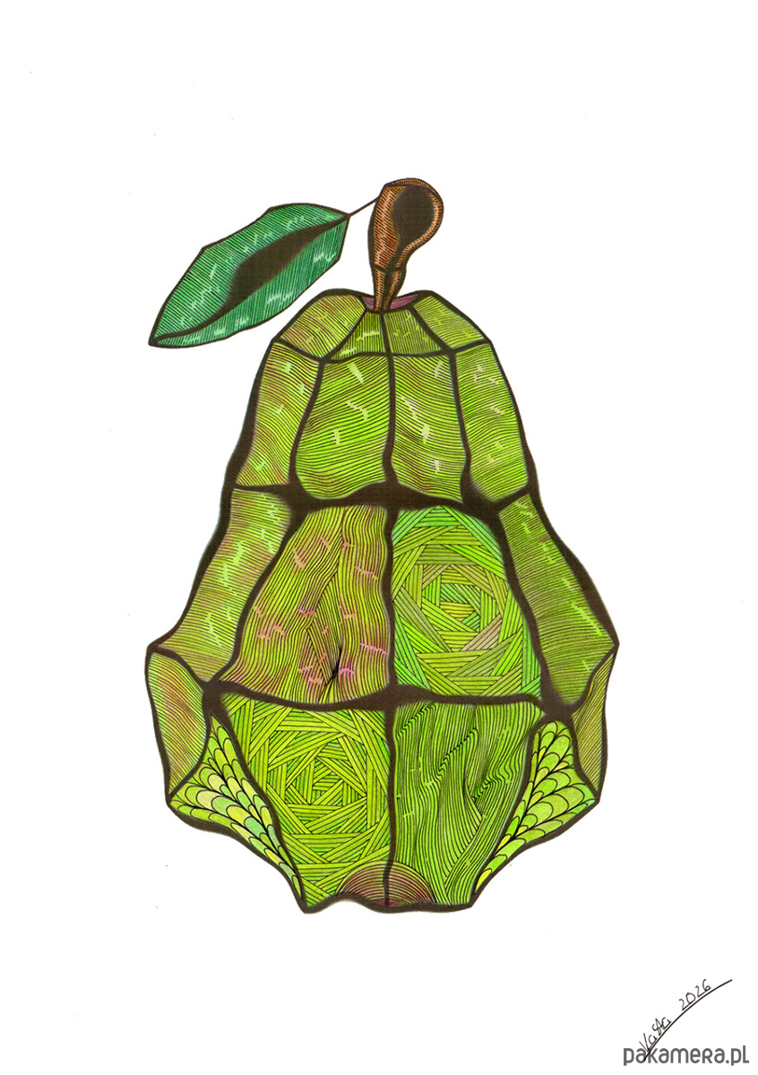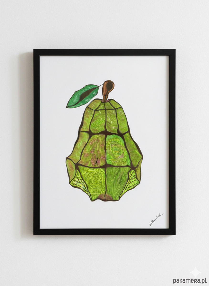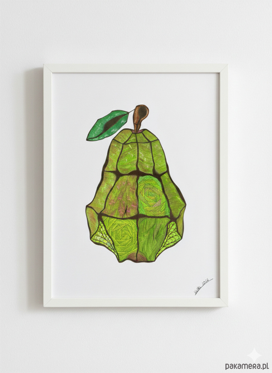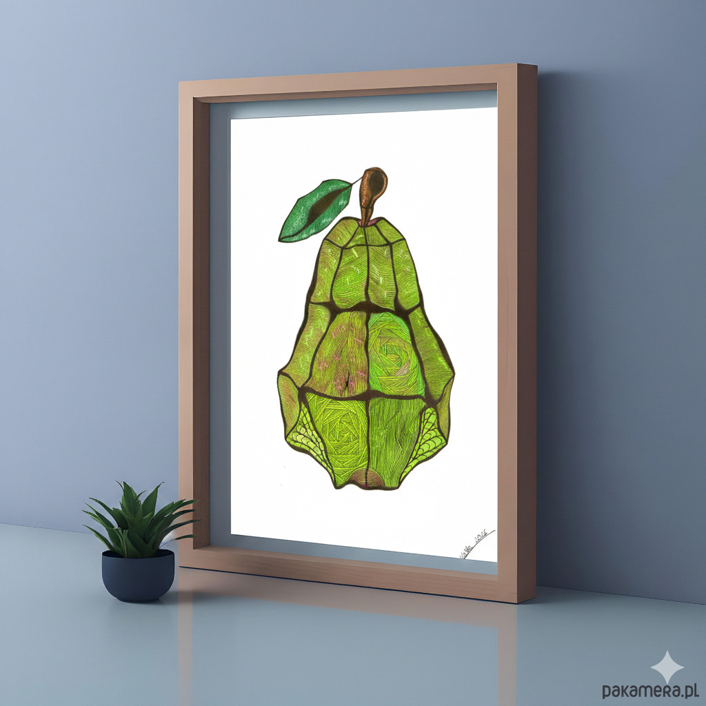 Stylowa grafika przedstawiająca gruszkę.