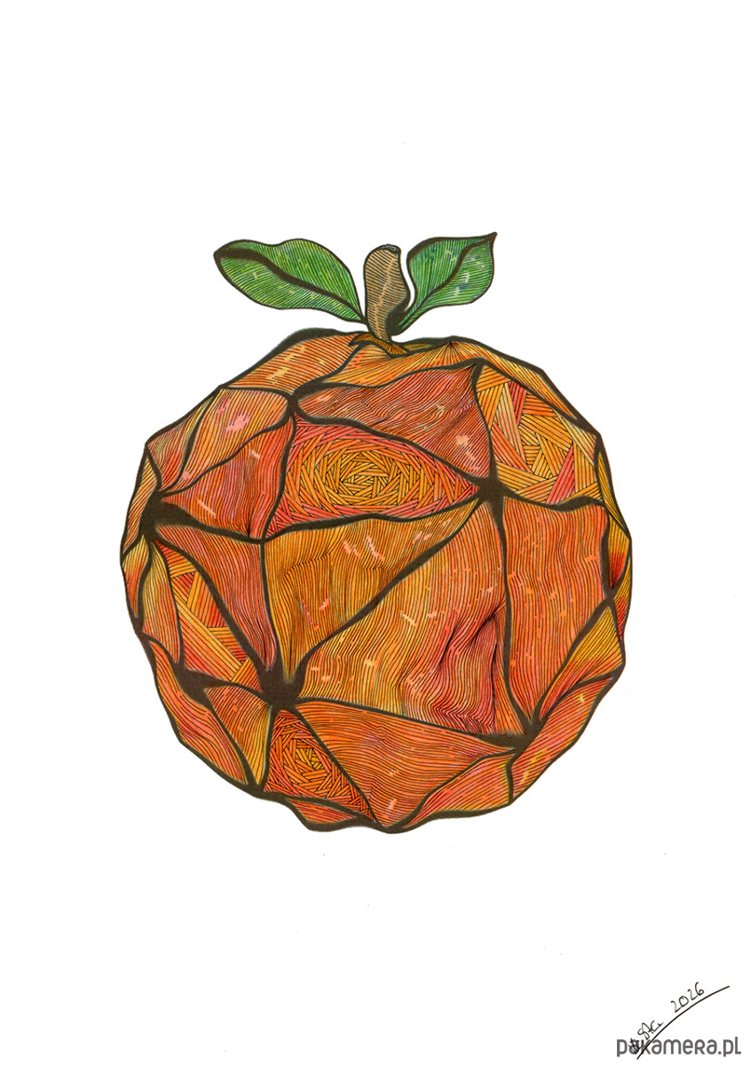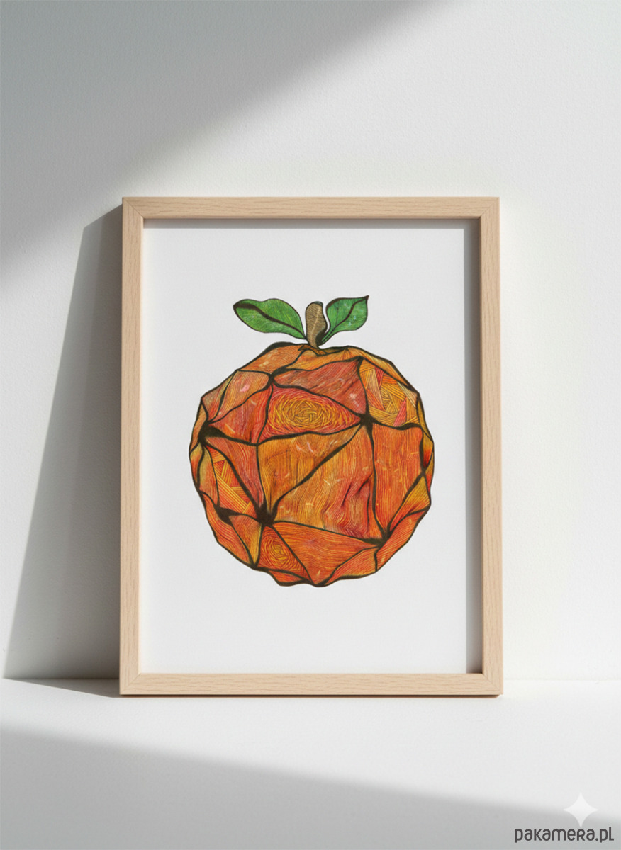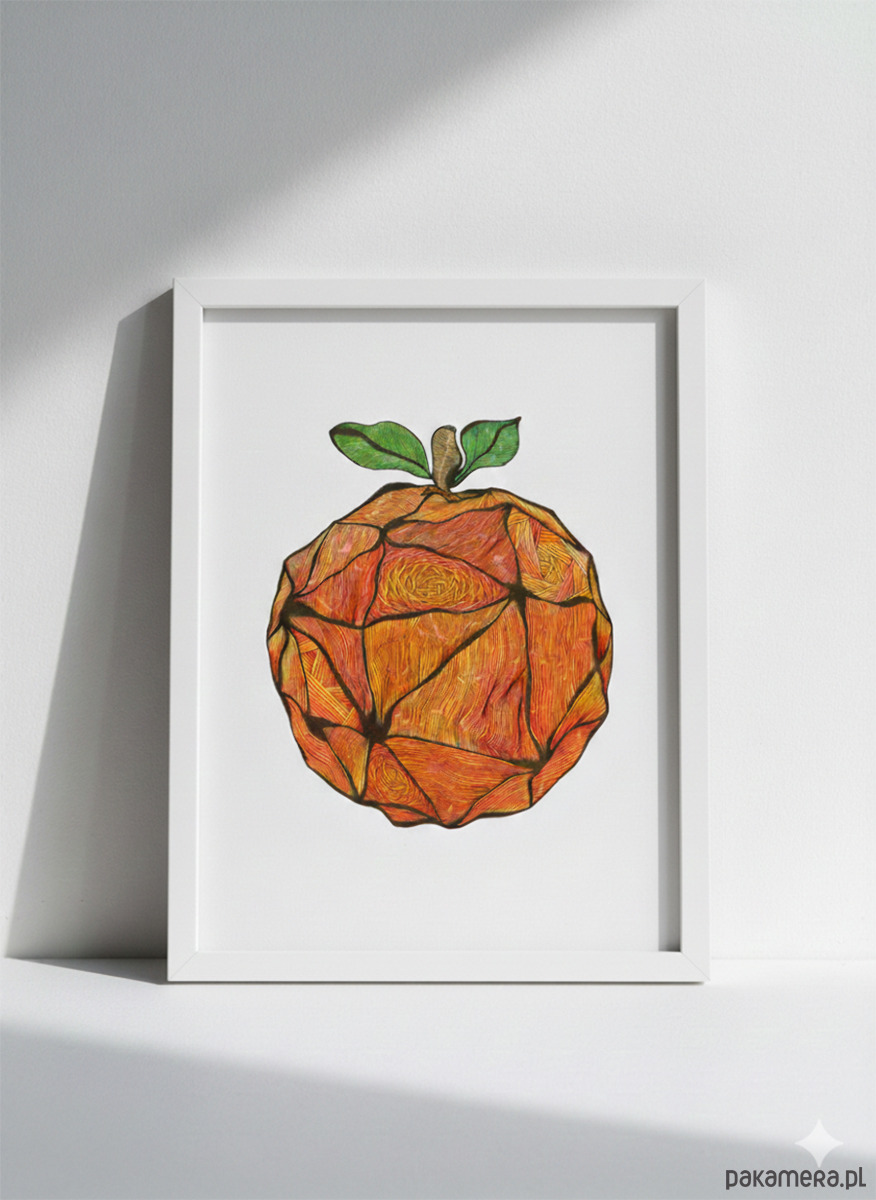 Energetyczna grafika przedstawiająca pomarańczę.