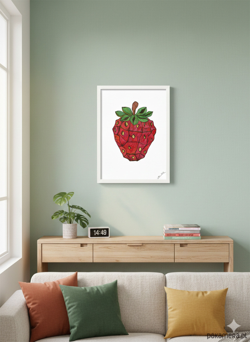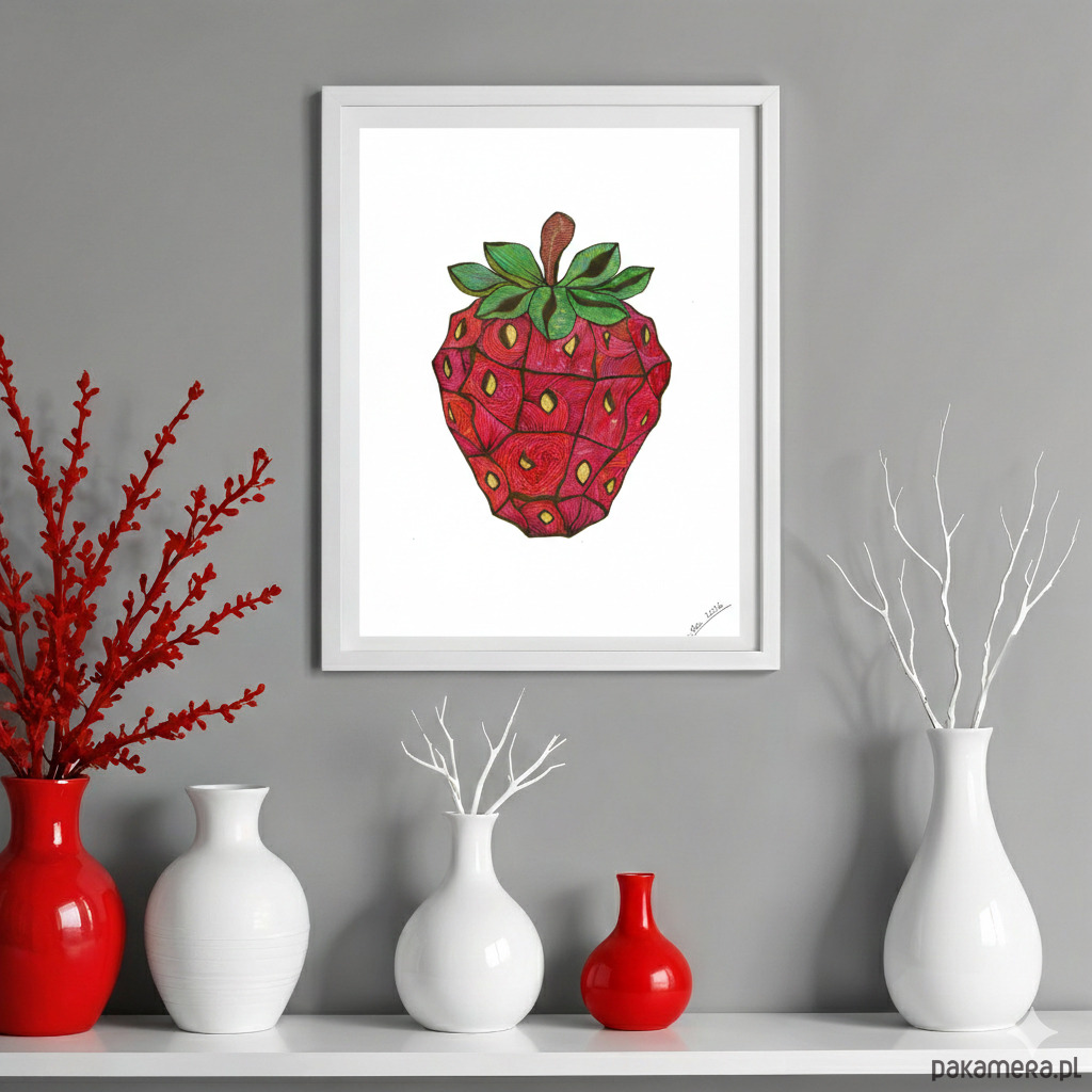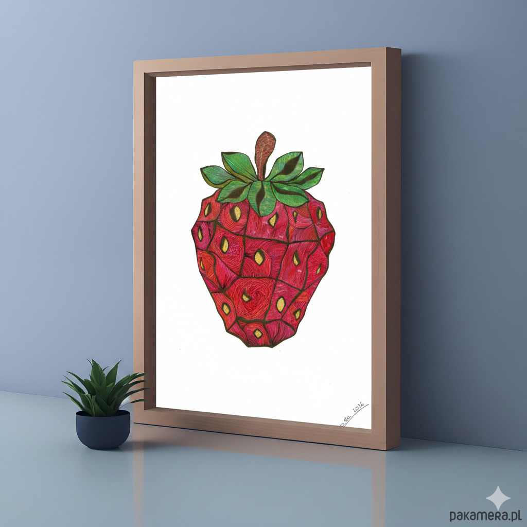 Wyrazista grafika przedstawiająca truskawkę.
