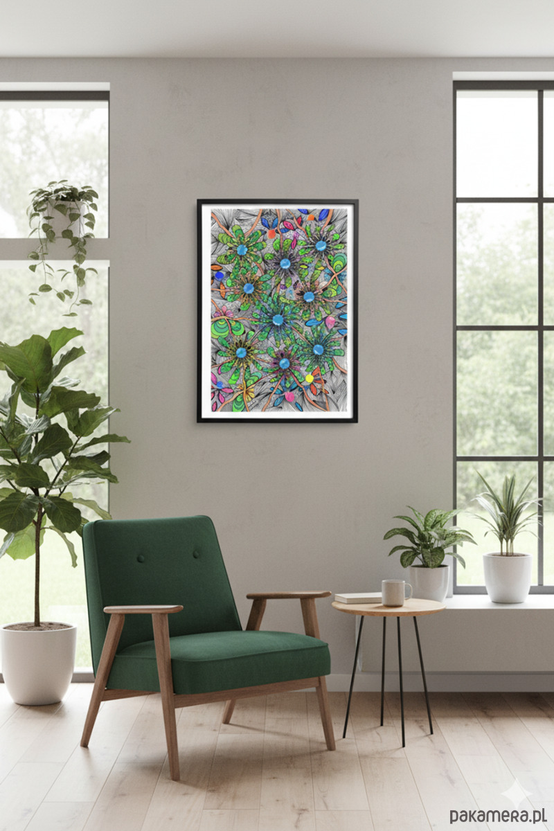 Wydruk autorskiego rysunku na satynowym papierze o gramaturze 200g/m2 - sprzedawany bez ramki - rysunki w ramkach na zdjęciach to wizualizacje.