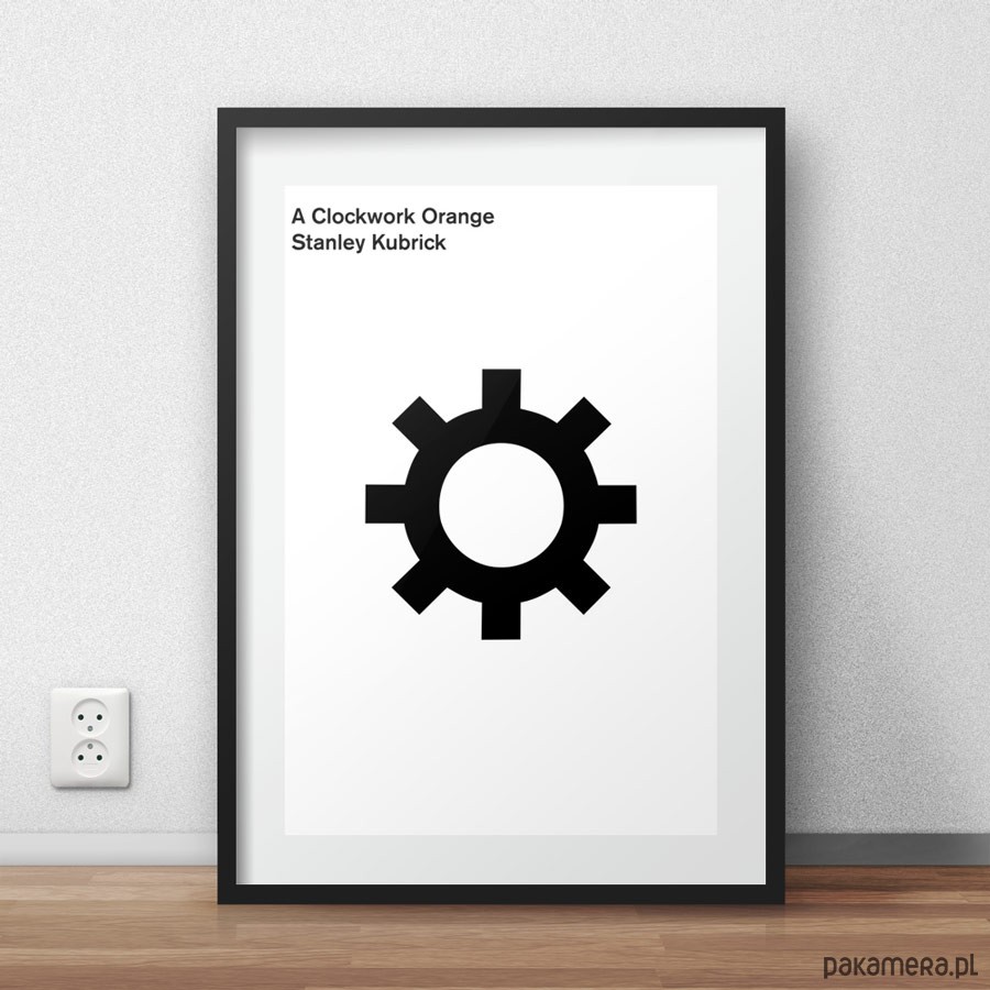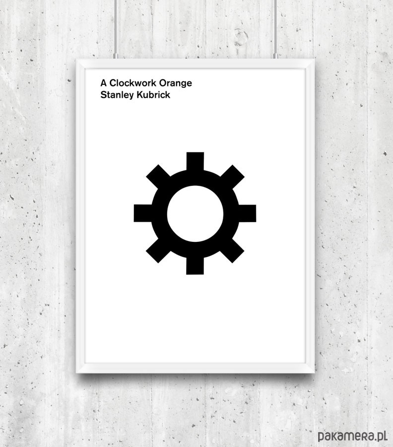 Plakat z autorską grafiką inspirowany filmem "Mechaniczna pomarańcza" (A Clockwork Orange) w reżyserii Stanleya Kubricka.