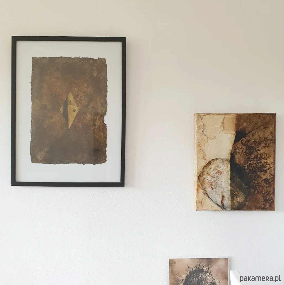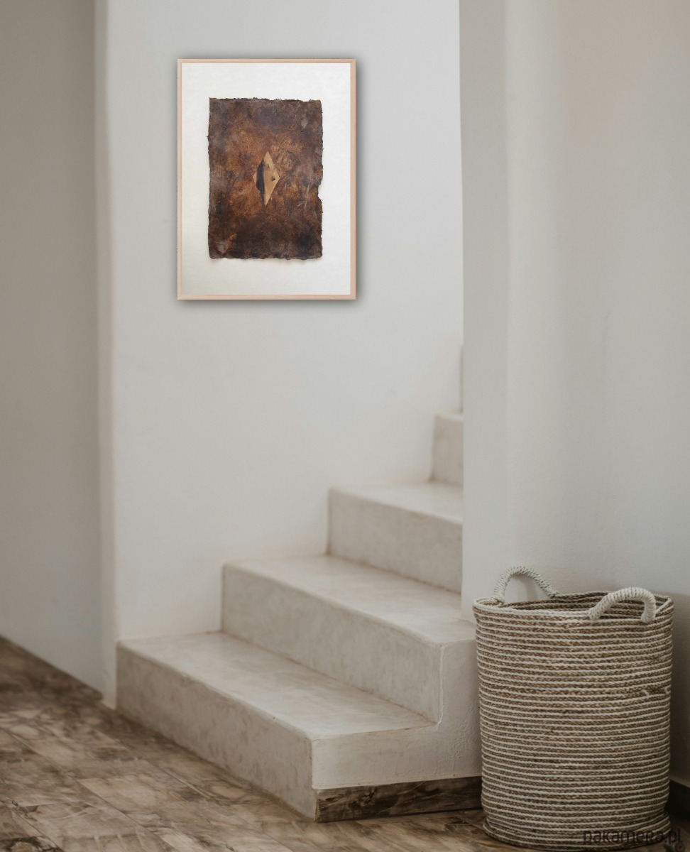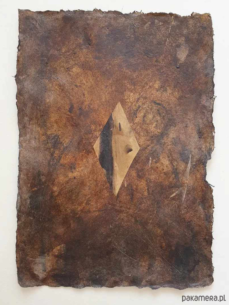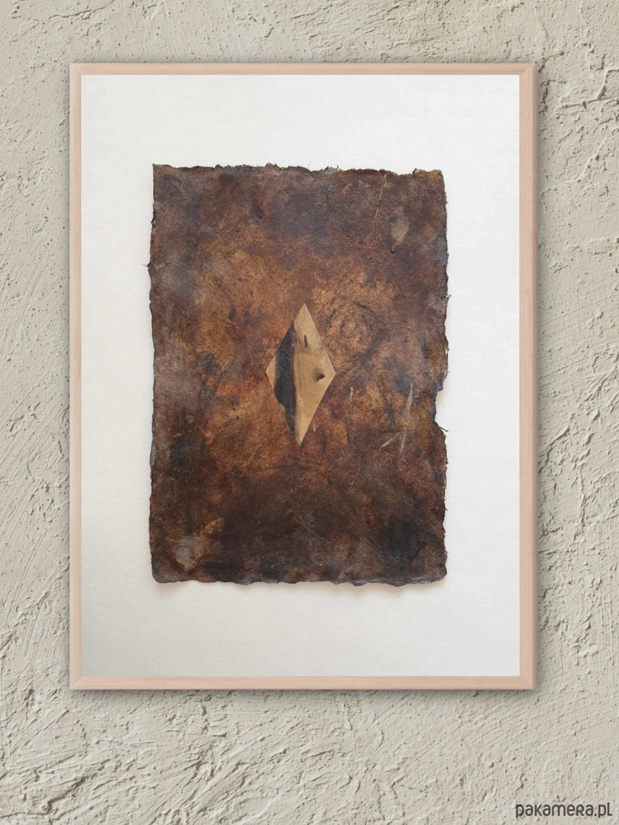 Abstrakcja 01 pigmenty ziemne, kolaż A4 na papierze czerpanym