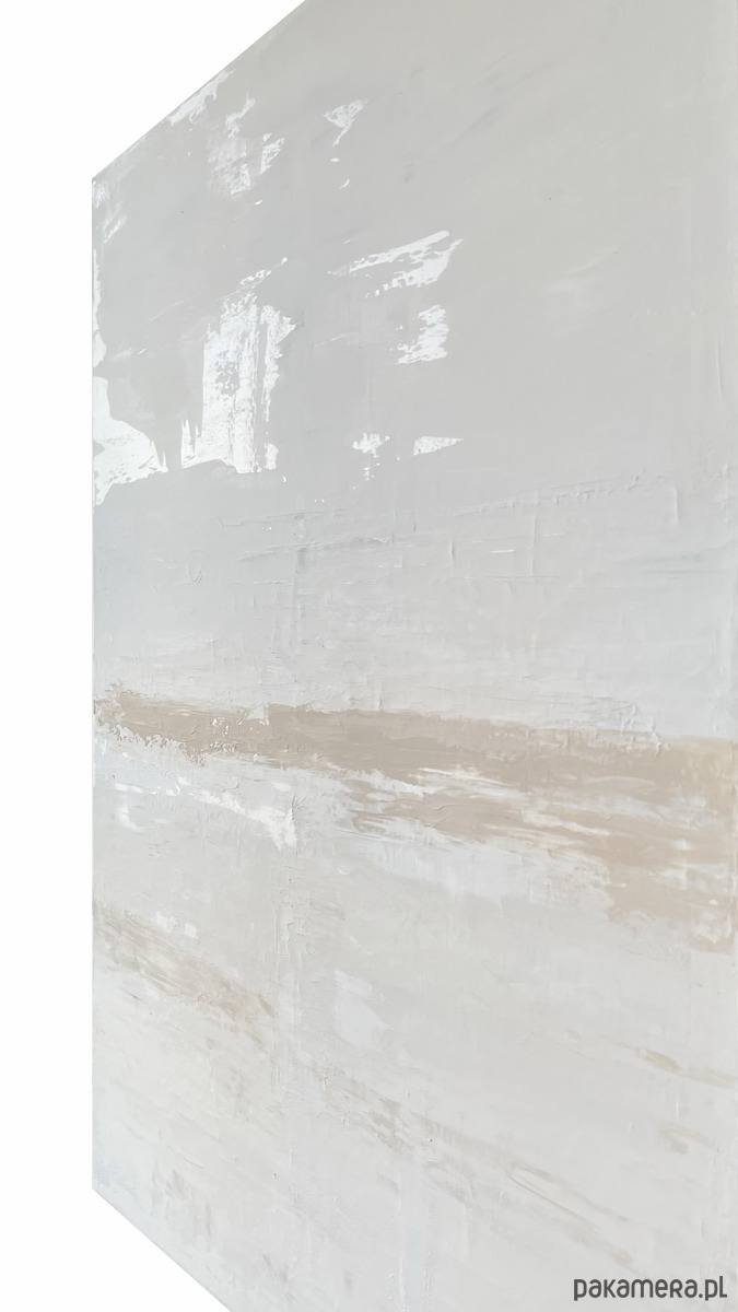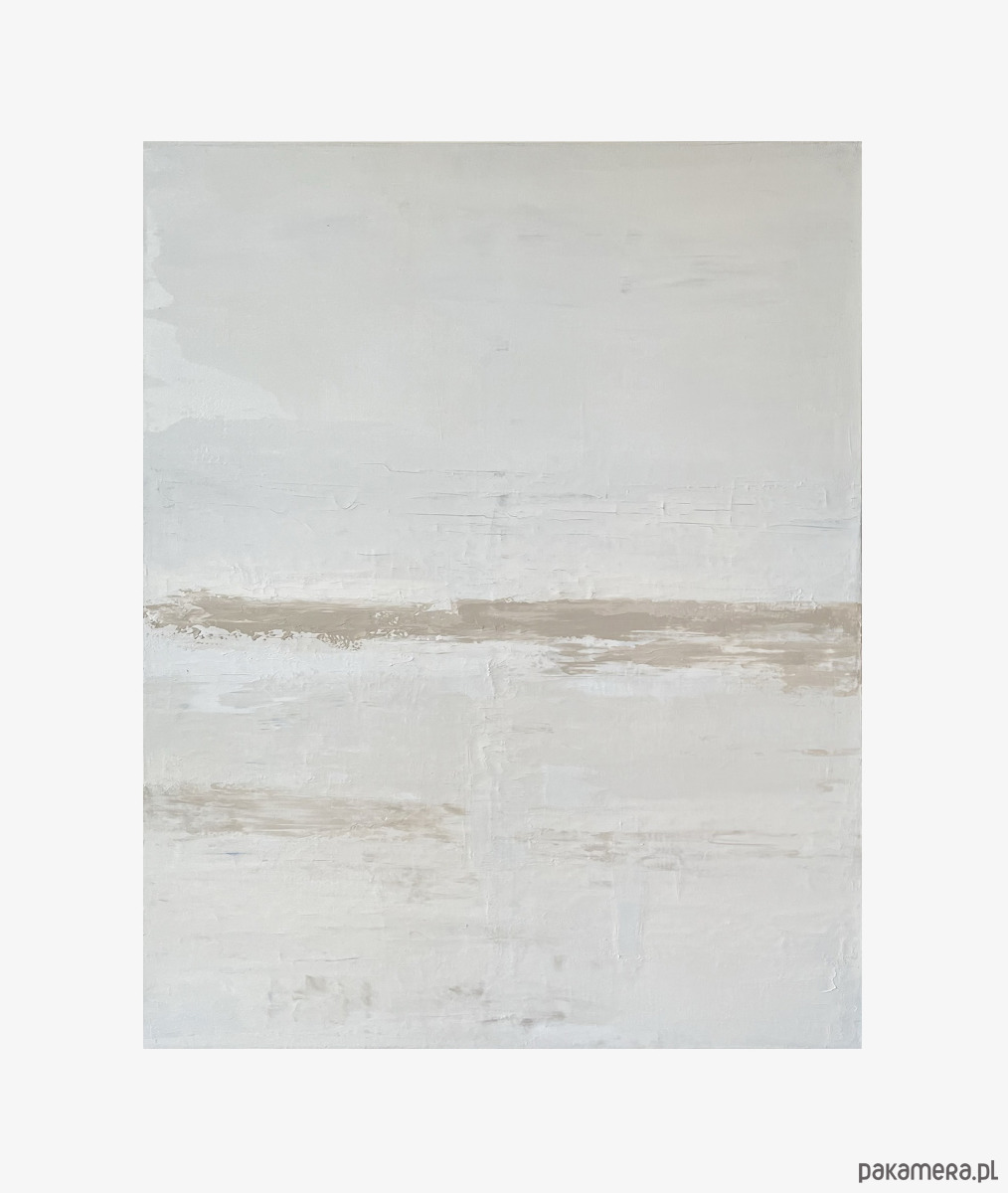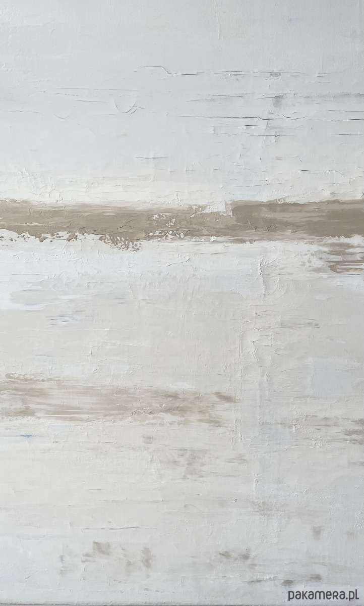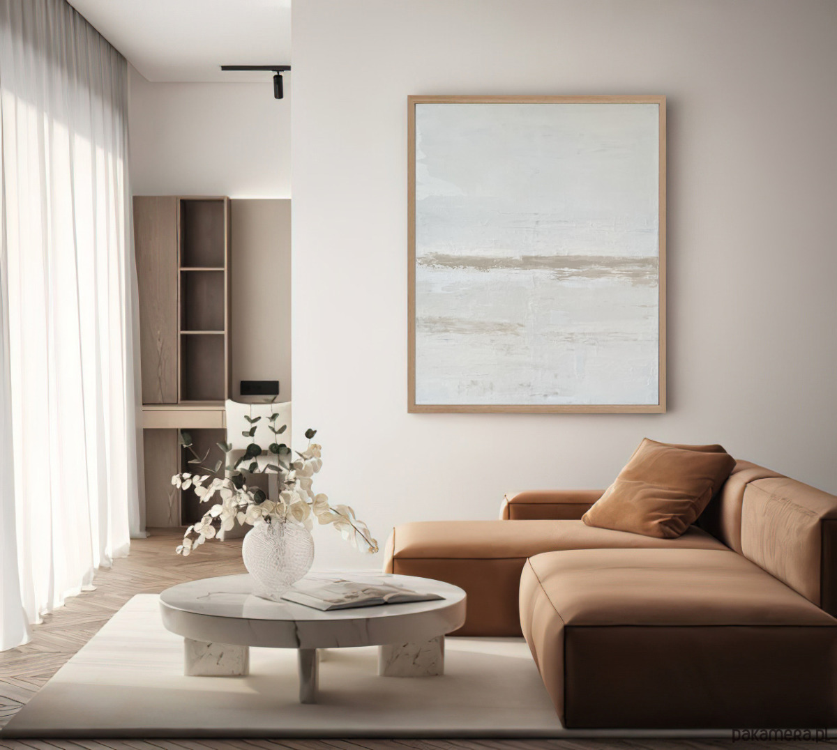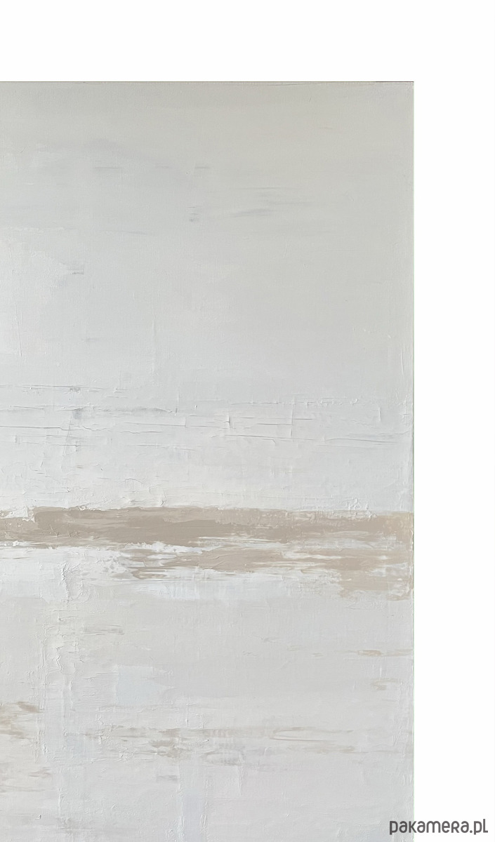 Kompozycja inspirowana krajobrazem we mgle. Obraz wprowadzi ciepłą jasną kolorystykę do wnętrz.