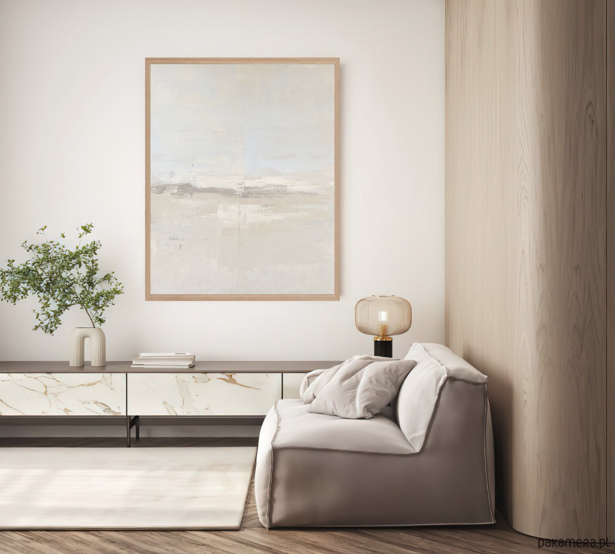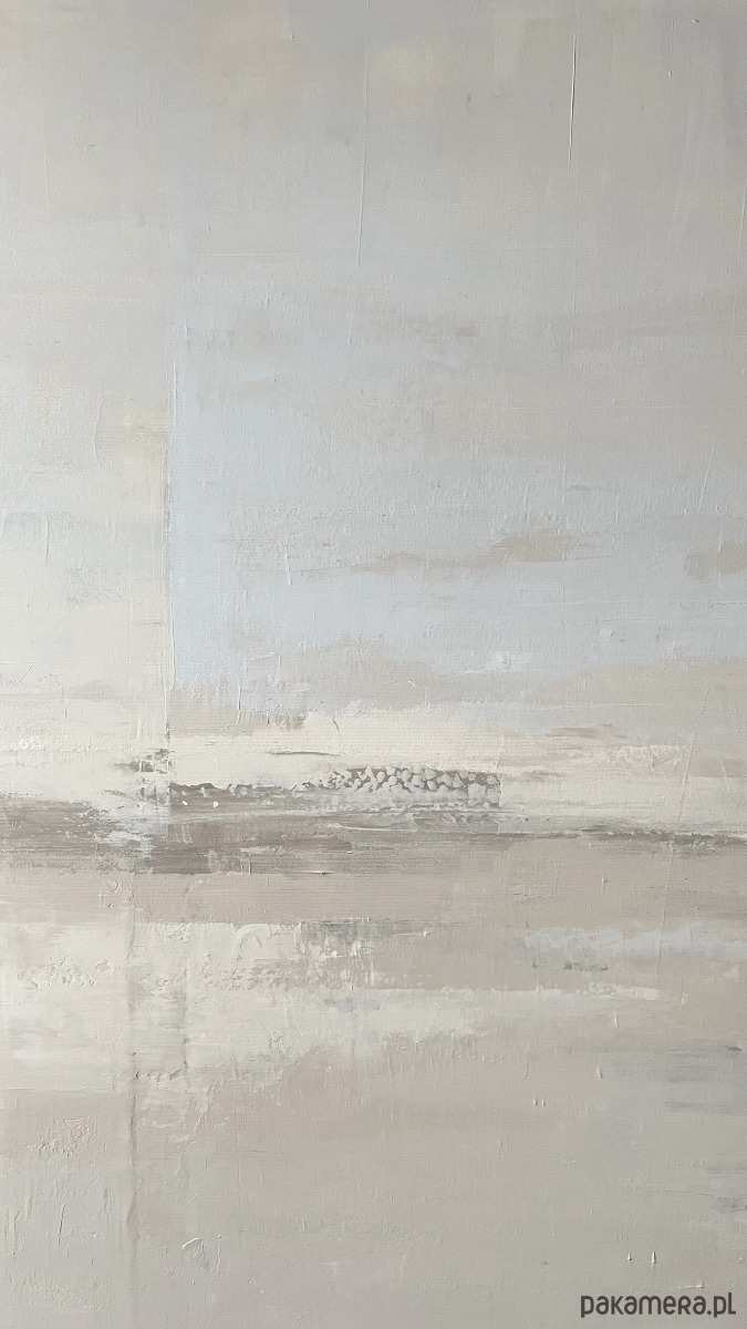 Abstrakcja “Delikatność” to obraz, który zwraca uwagę swoją subtelnością i harmonią. Kompozycja składa się z delikatnych beżów i brązów, które tworzą spokojne tło dla niebieskiego akcentu. Niebieski symbolizuje tu głębię, uczucia i marzenia. Obraz jest idealny do jasnych wnętrz, gdzie doda elegancji i wyrafinowania. Zaprasza do refleksji i kontemplacji.