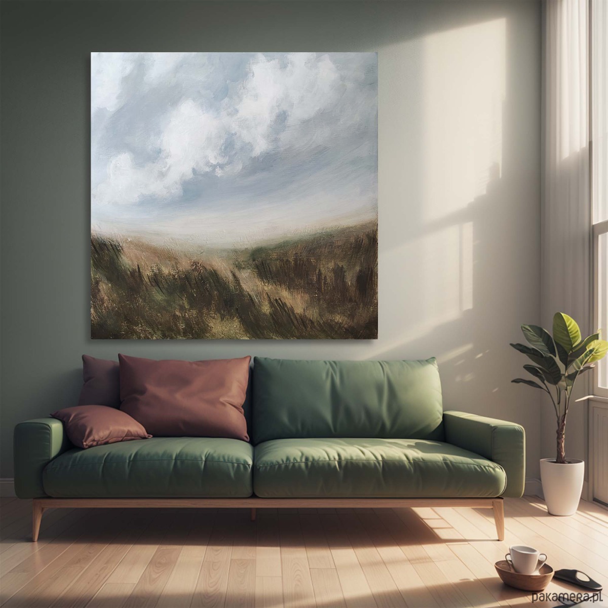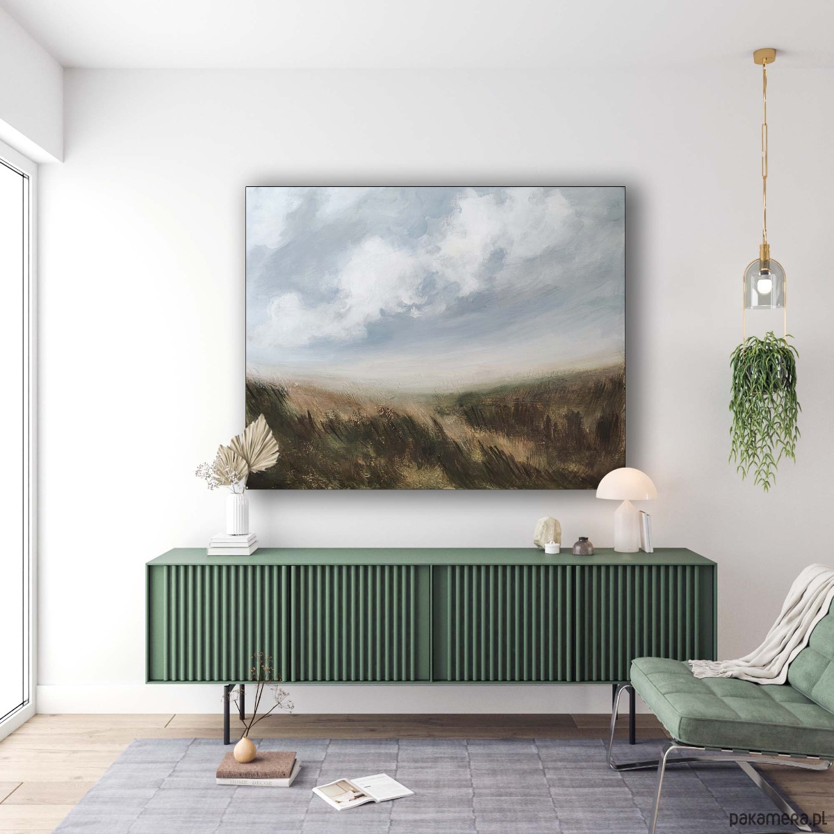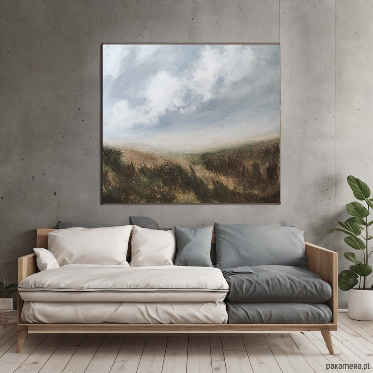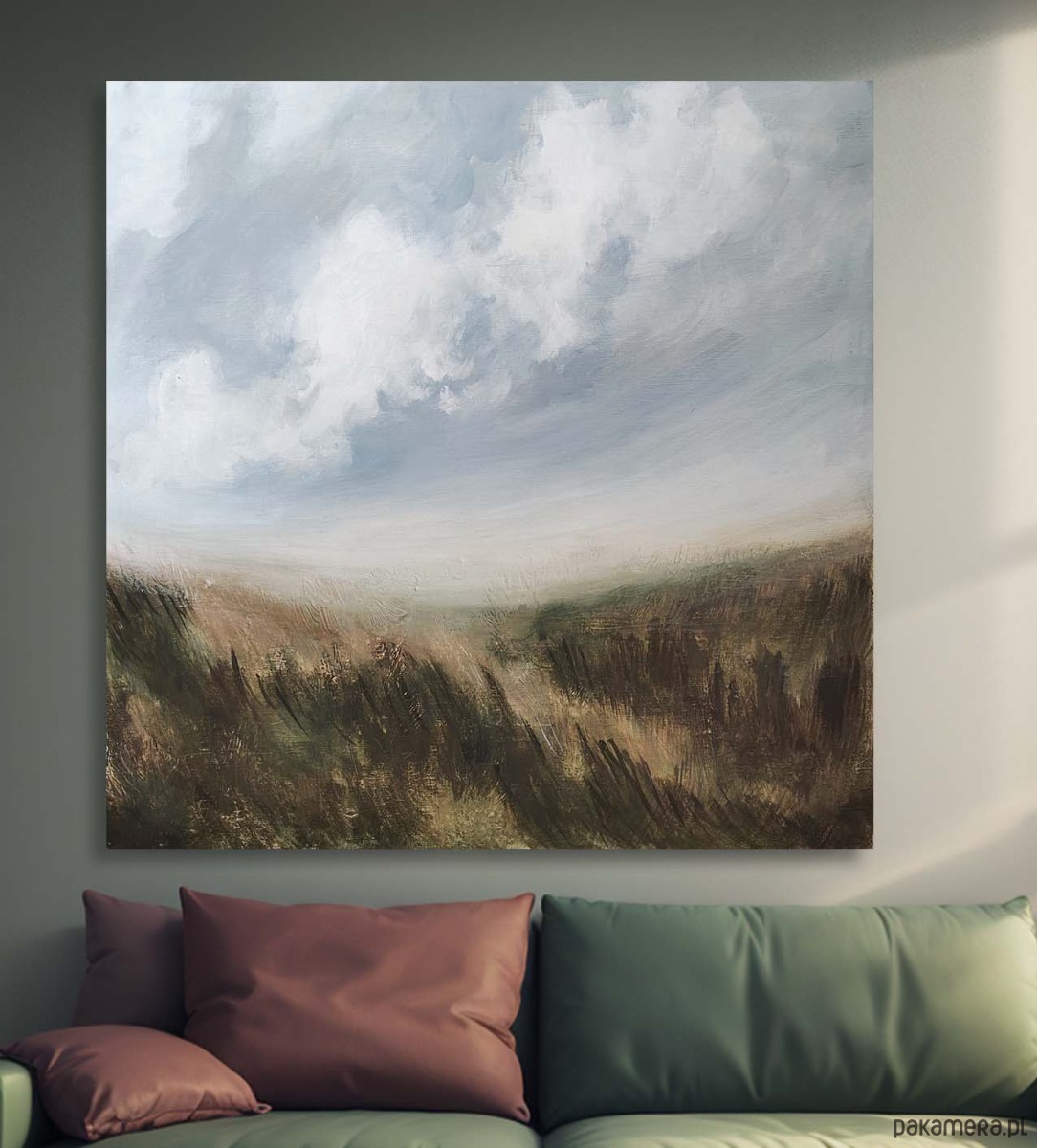 Ręcznie malowany obraz wykonany farbami akrylowymi. Solidne podobrazie - wysokiej jakości bawełniane włoskie płótno. Boki podobrazia zamalowane, stanowią kontynuację obrazu. Nie wymaga oprawiania w ramę.