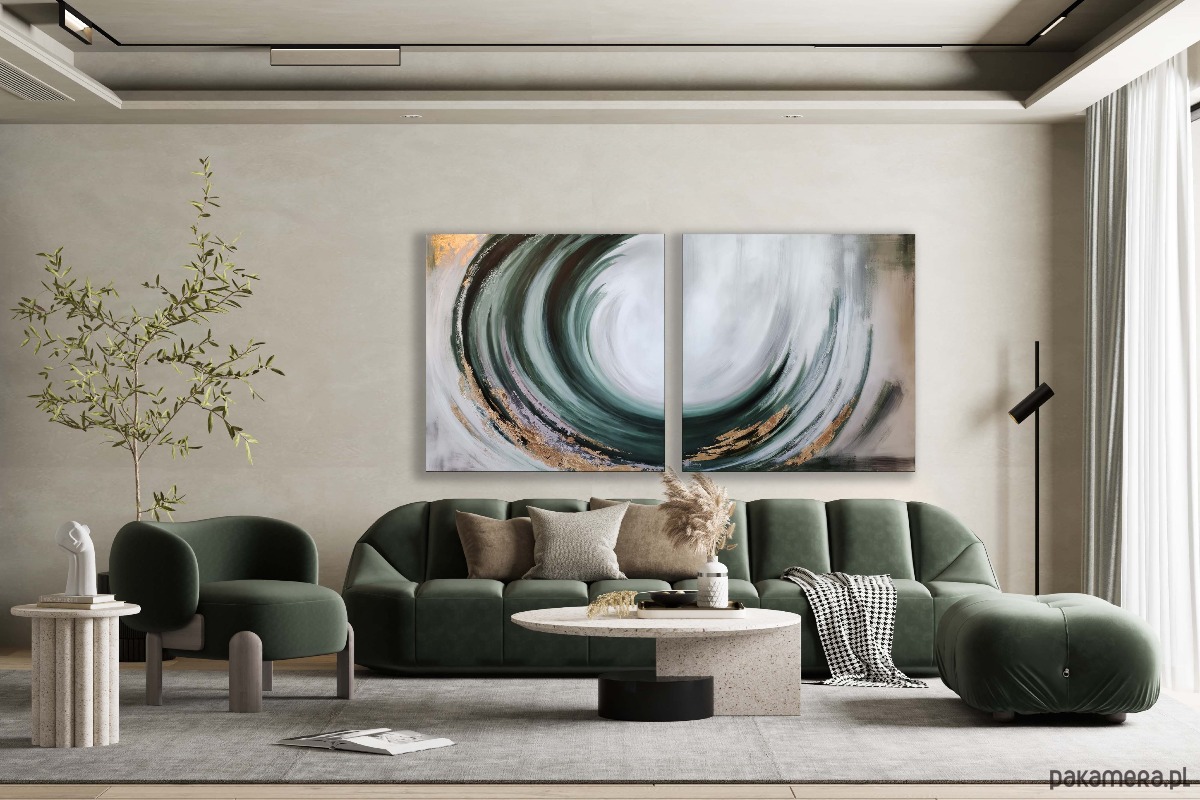 Abstrakcja Wave Ręcznie malowany obraz Dyptyk 100x200 cm