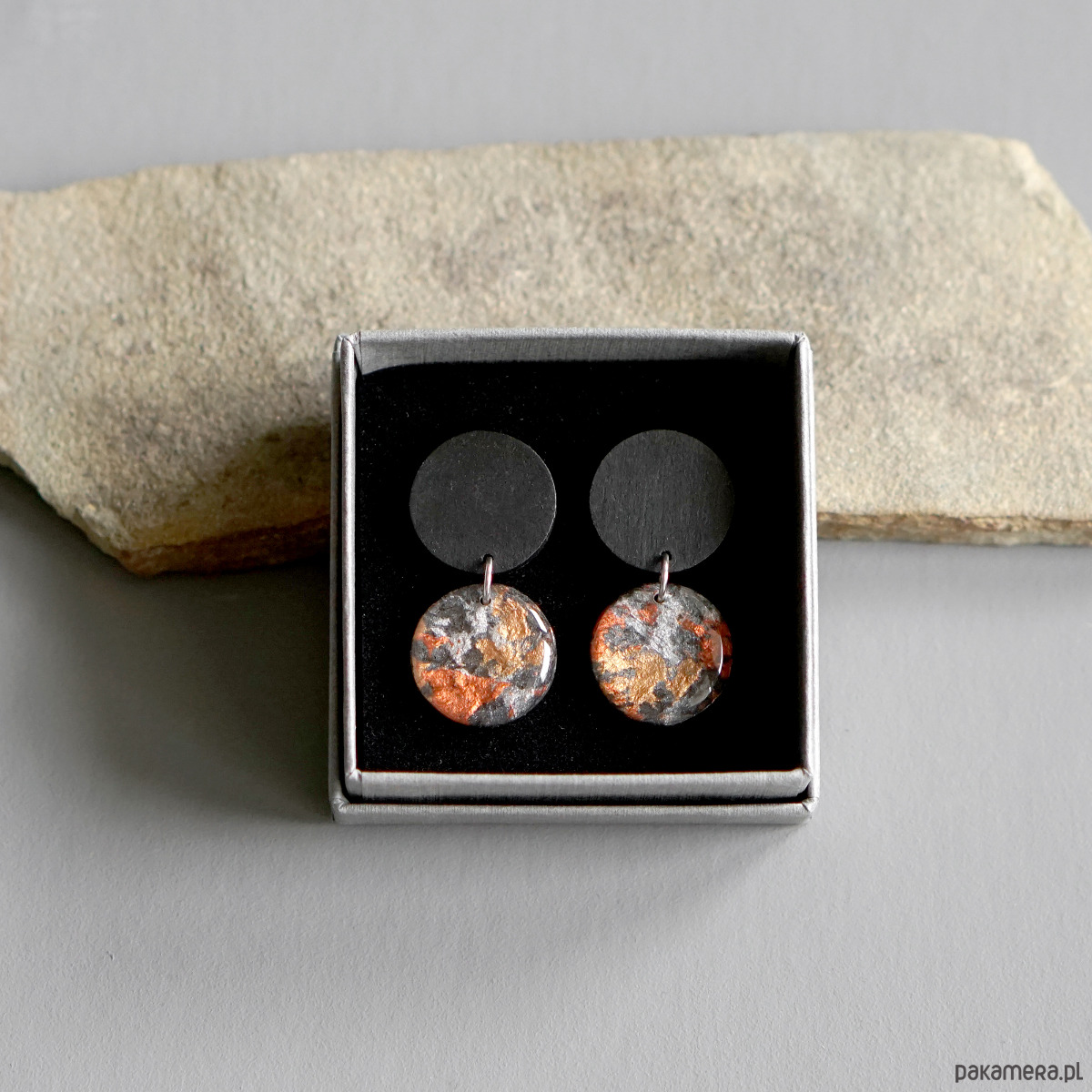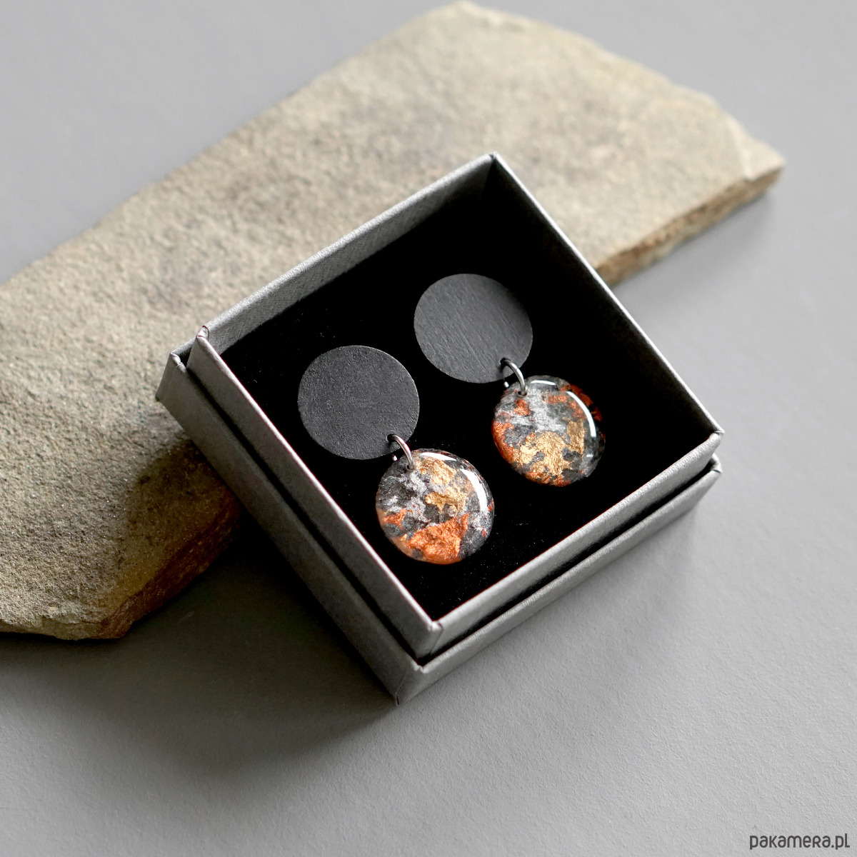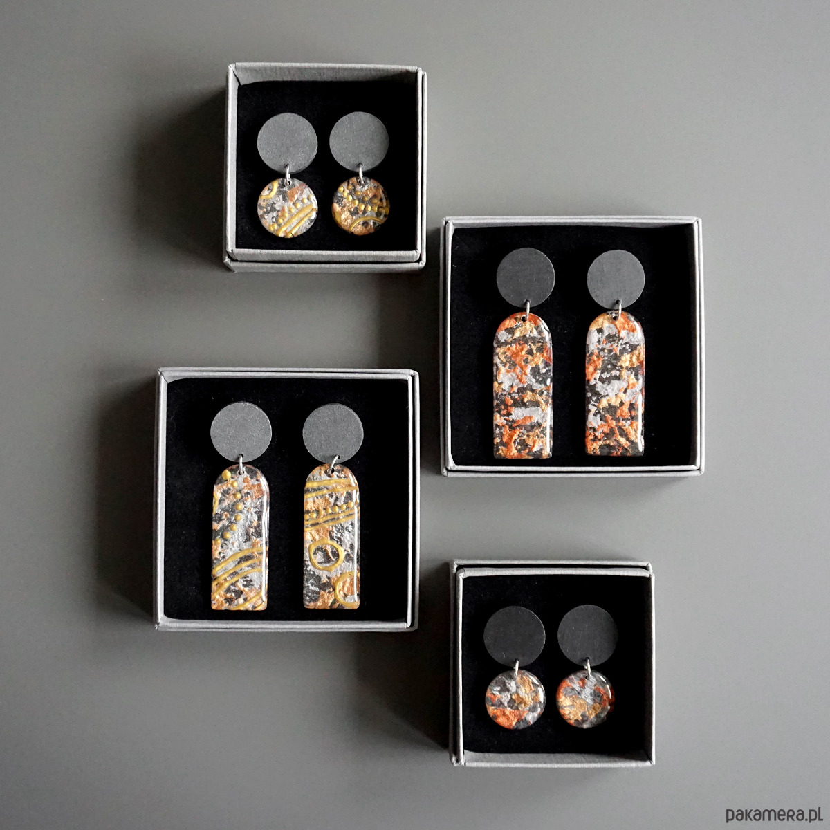 Zapakowane będą w szare eleganckie pudełeczko do biżuterii.