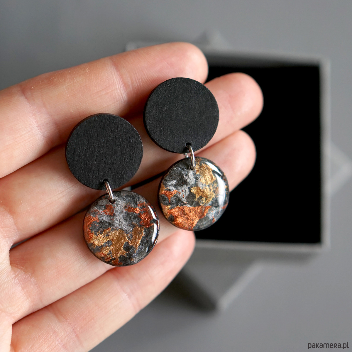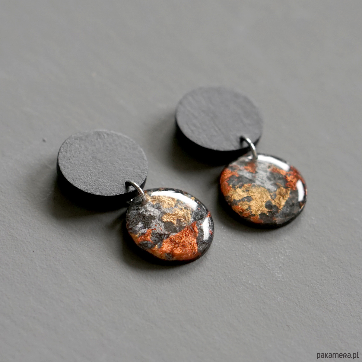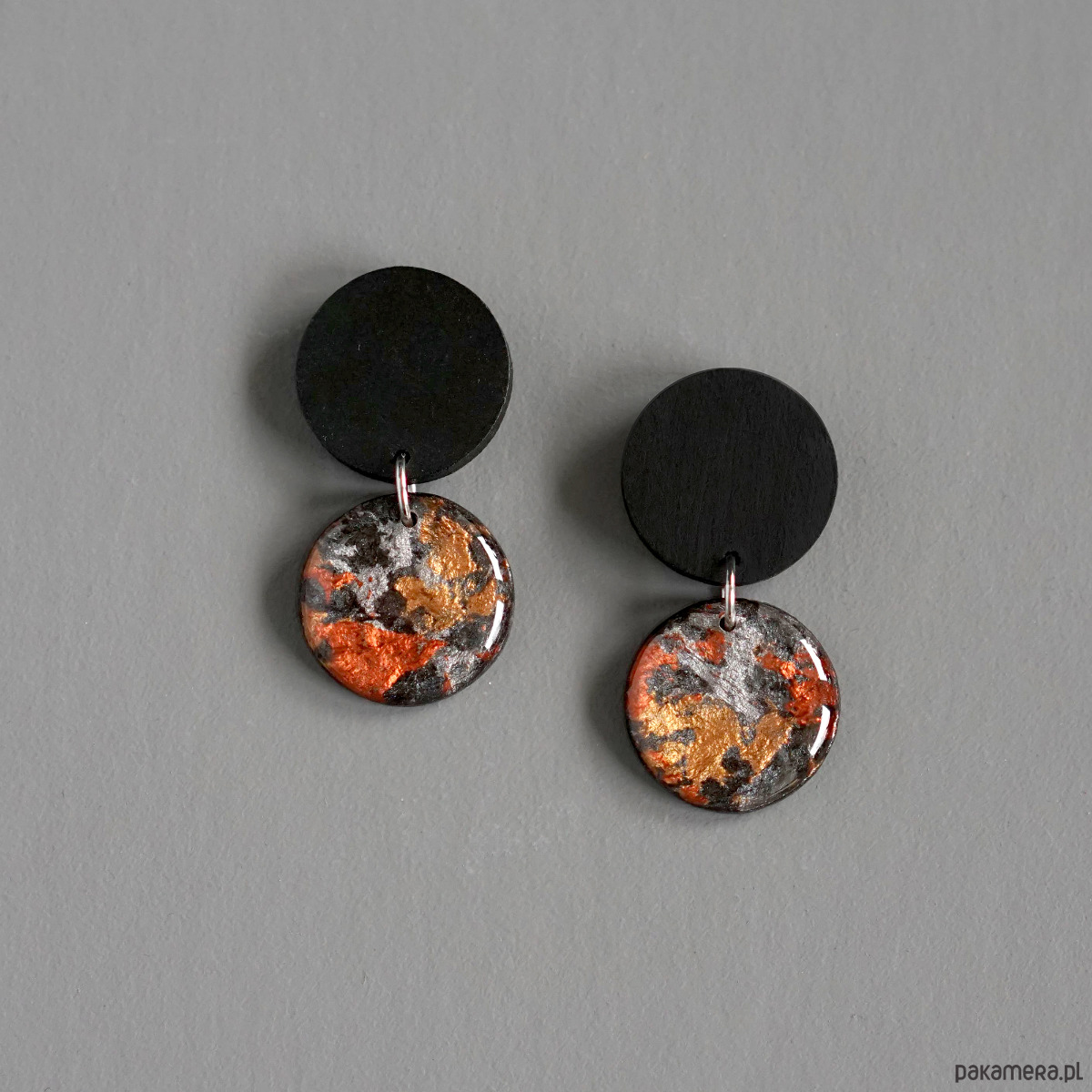 Wzór na kółeczkach został naniesiony ręcznie i na każdym kolczyku będzie nieco inny co sprawia, że każda para jest absolutnie niepowtarzalna.