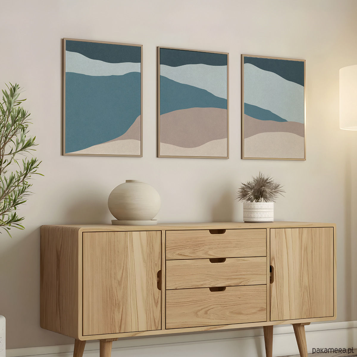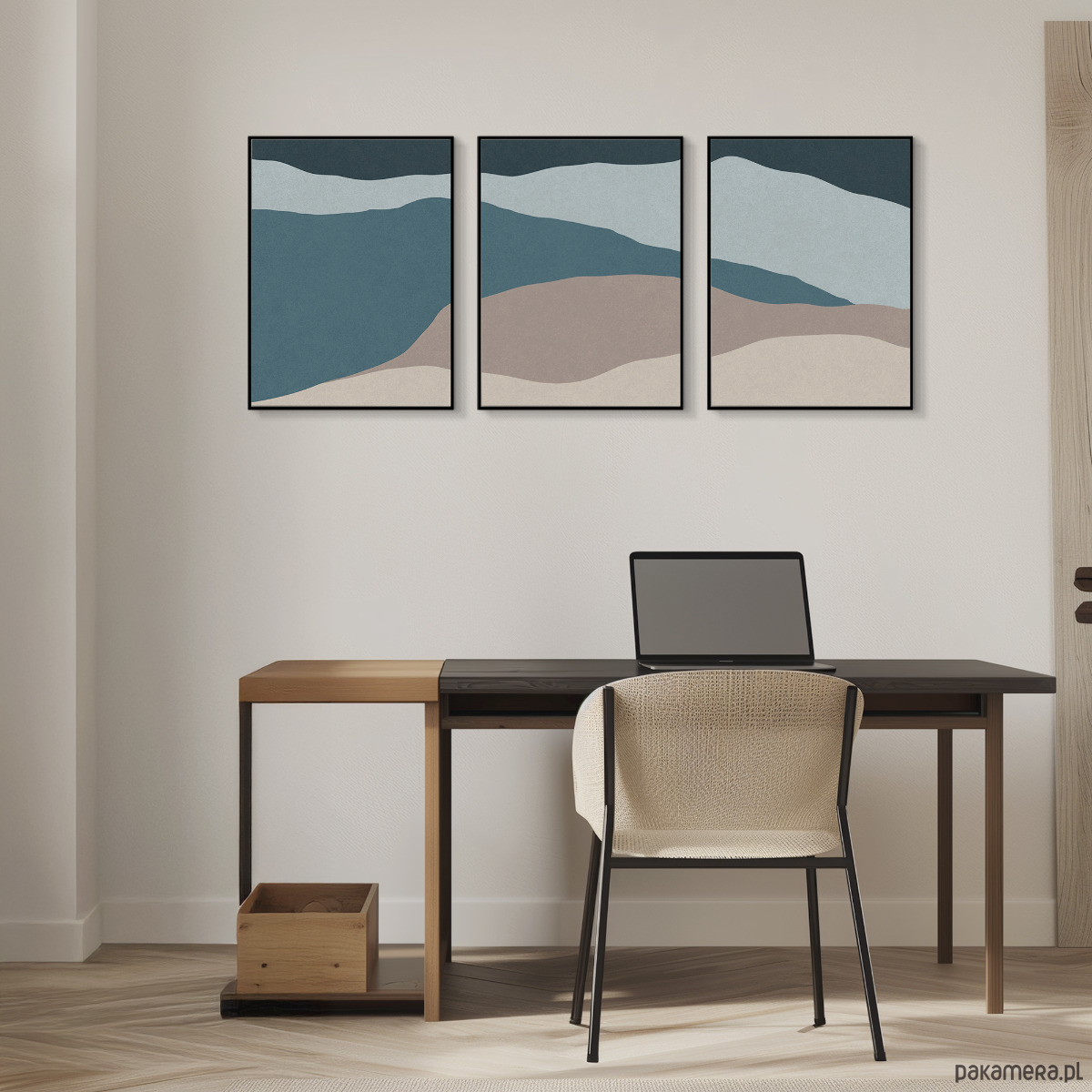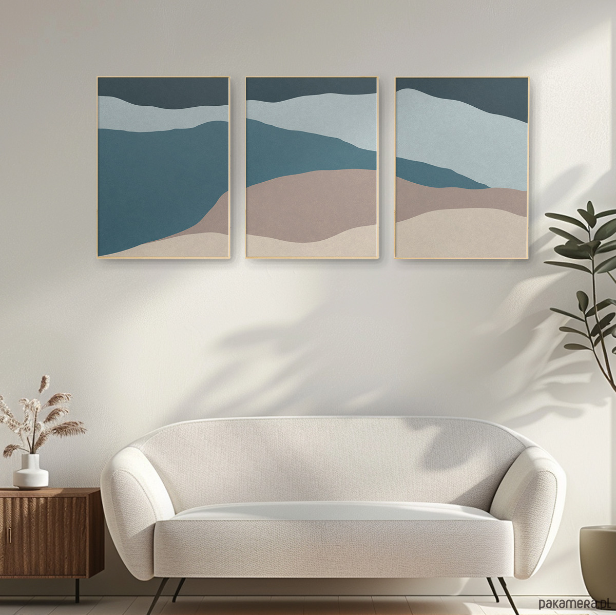 Abstrakcyjny zestaw 3 plakatów w formie tryptyku, inspirowany motywem morza. Proste, geometryczne formy, delikatna tekstura oraz stonowana kolorystyka tworzą spójną kompozycję, która doskonale odnajdzie się w nowoczesnych i minimalistycznych wnętrzach.