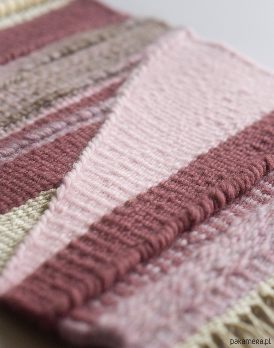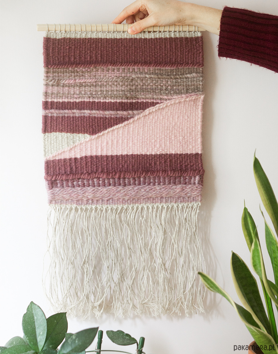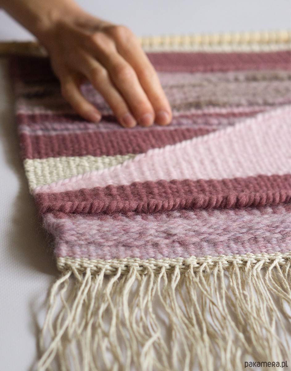 Gobelin wykonany jest tradycyjnymi technikami tkackimi z naturalnych włókien, wełny i lnu. Zawieszony na drewnianym drążku, gotowy do powieszenia na ścianie. Każdy egzemplarz jest jedyny w swoim rodzaju, co czyni go wyjątkową dekoracją lub niebanalnym prezentem.