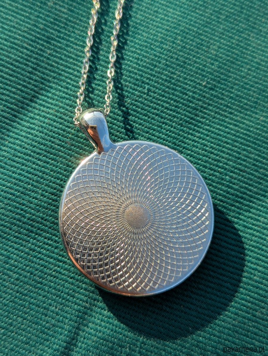 Baza ze stali chirurgicznej zawieszona jest na regulowanym łańcuszku o długości 45 cm (również ze stali chirurgicznej).
