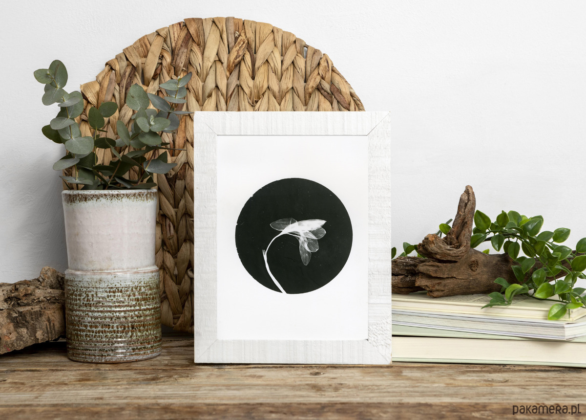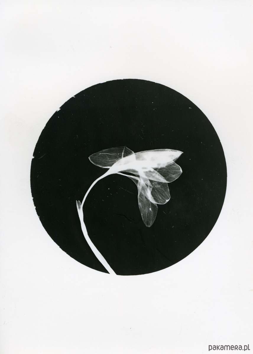 Fotogram, wykonany w ciemni fotograficznej na matowym papierze czarno białym firmy foma/perła o rozmiarze 13x18cm. Sprzedawany bez ramki.