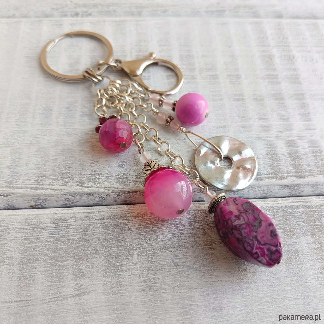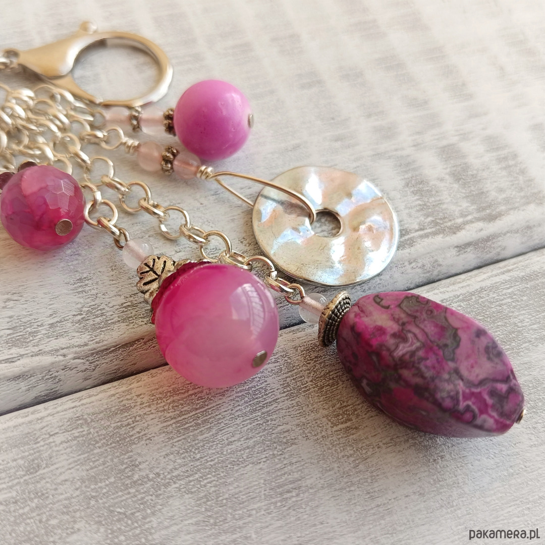 Brelok wykonany z kamieni naturalnych: marmur, agat, elementów bali, elementów srebrzonych.