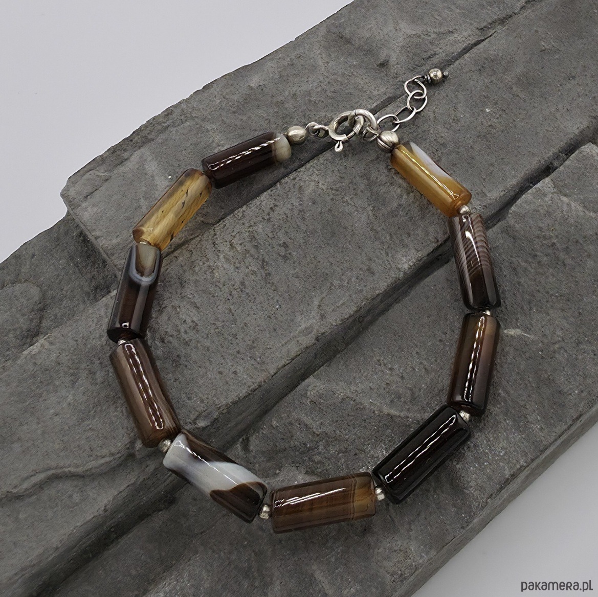 Minimalistyczna bransoletka na co dzień . Wykonana w całości z oksydowanego srebra próby 925 oraz walców agatu wielkości ok. 15x6 mm. Całkowita długość bransoletki regulowana od 20 cm do 21,5 cm. Ozdobnie zapakowana.