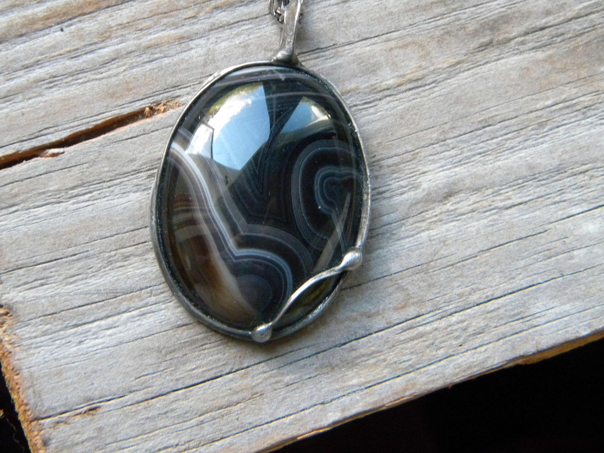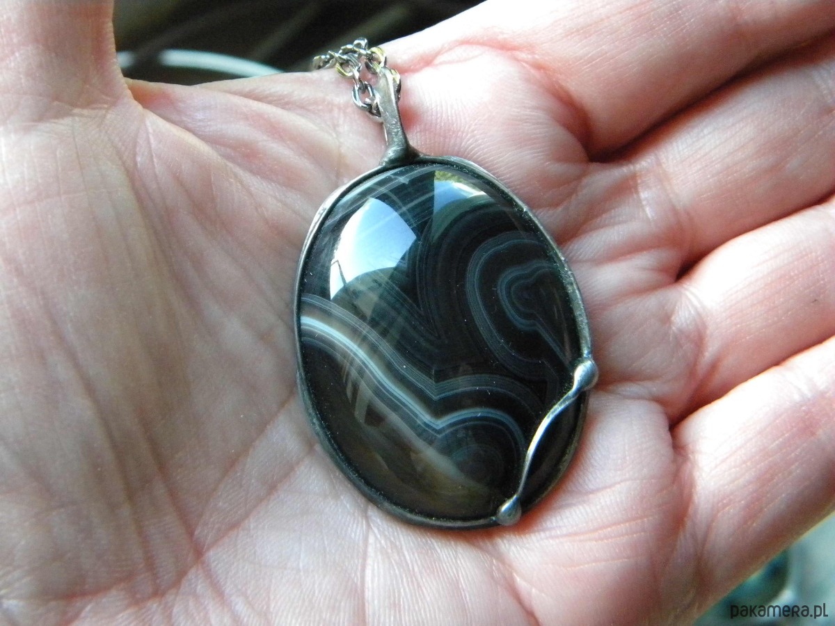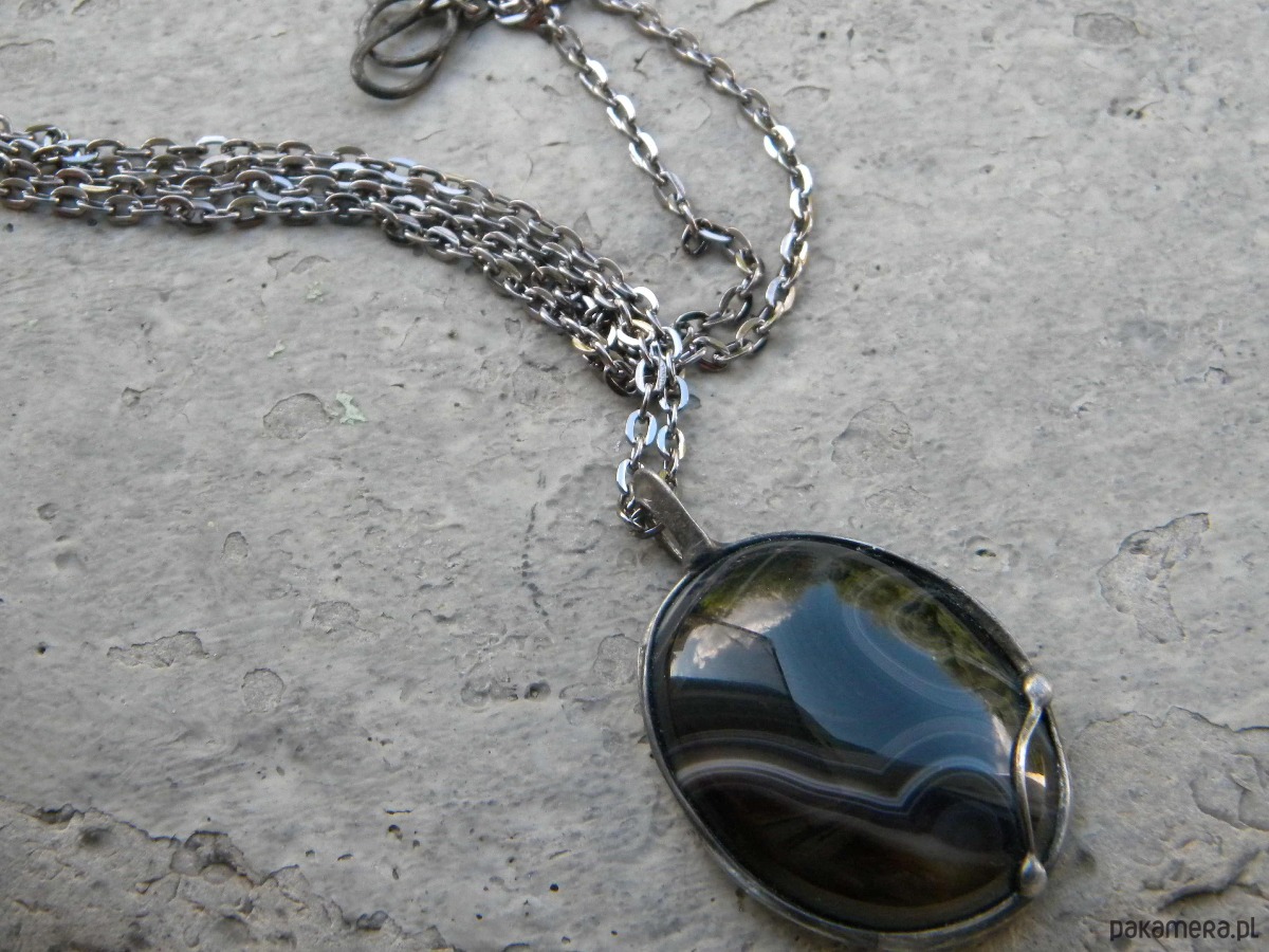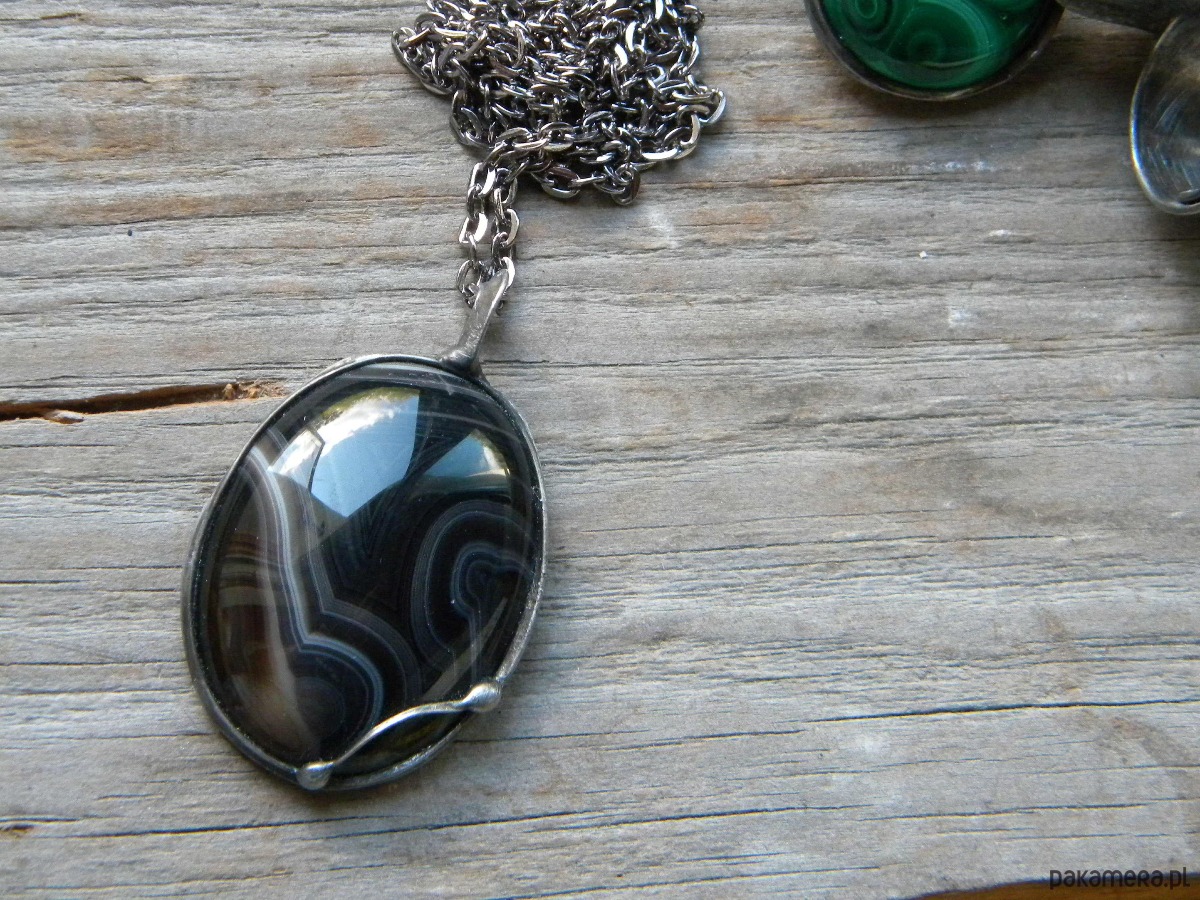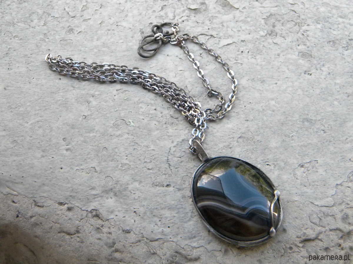 agat sardonyks w oprawie z ocynowanej miedzi