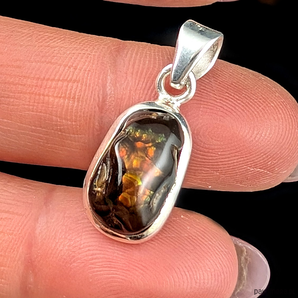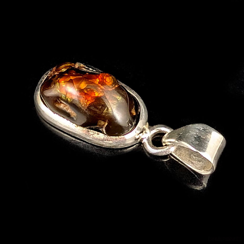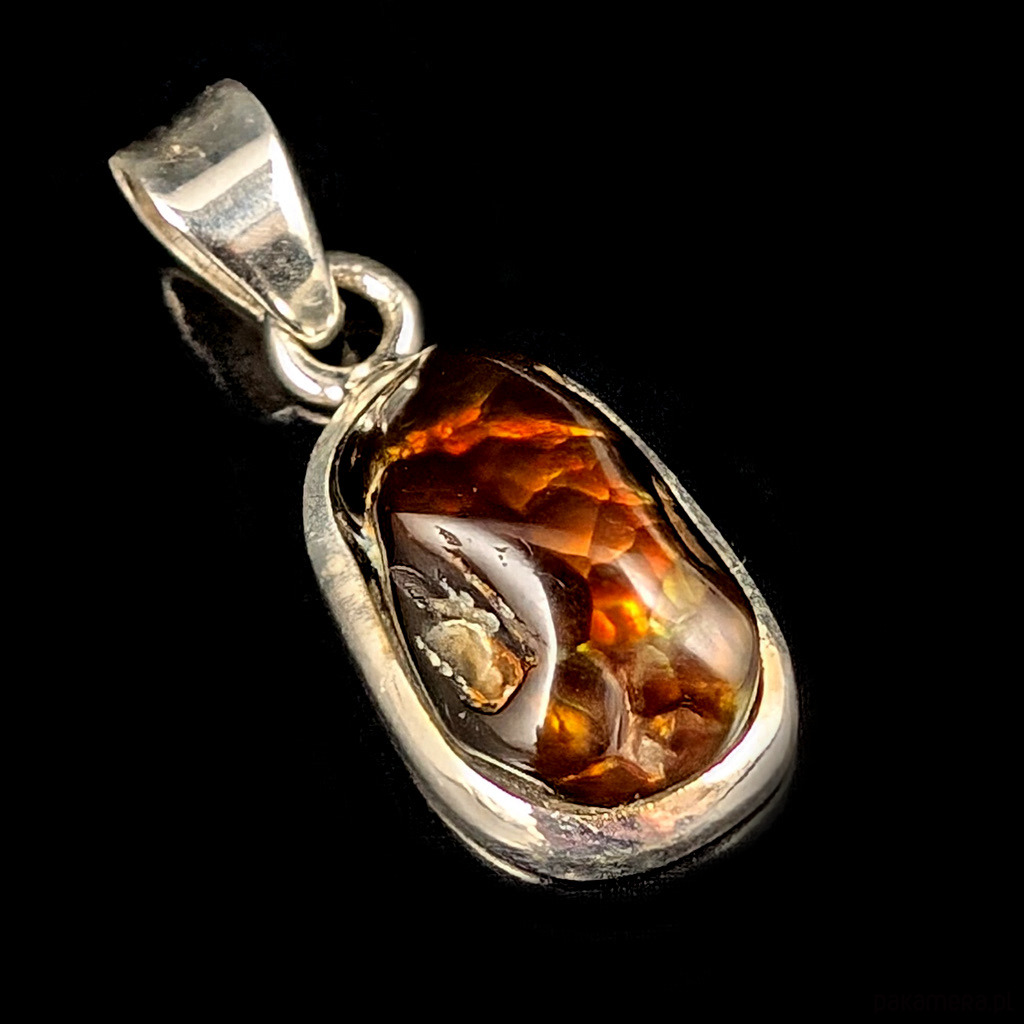 Rzadka, drogocenna odmiana agatu, tzw. agat ognisty. Niesamowite zjawisko iryzacji o podobnej do opalu czy ammolitu grze barw, która powstaje wskutek ugięcia i załamania światła na wrostkach żelaza. Tafla wyglądająca nieco jak smocza skóra. Kamień jest oprawiony w srebro próby 925. Wymiary oprawy 16 x 10 mm, długość z krawatką 26 mm. Waga 3,3 grama. Polecam unikatowy kamień. Wyrób wykonany przez dostawcę kamieni. Wisiorek zostanie zapakowany w eleganckie pudełeczko.
