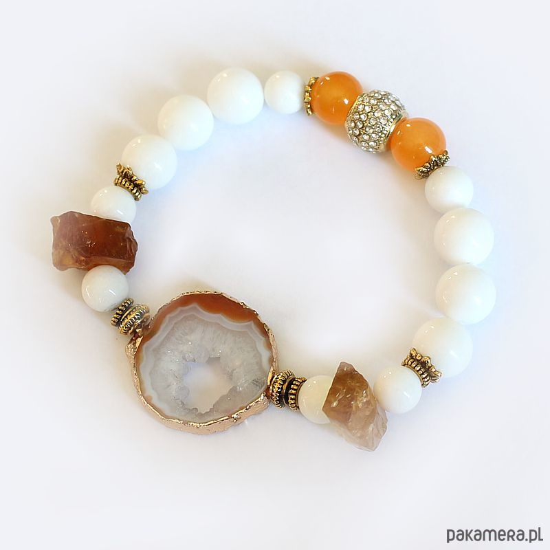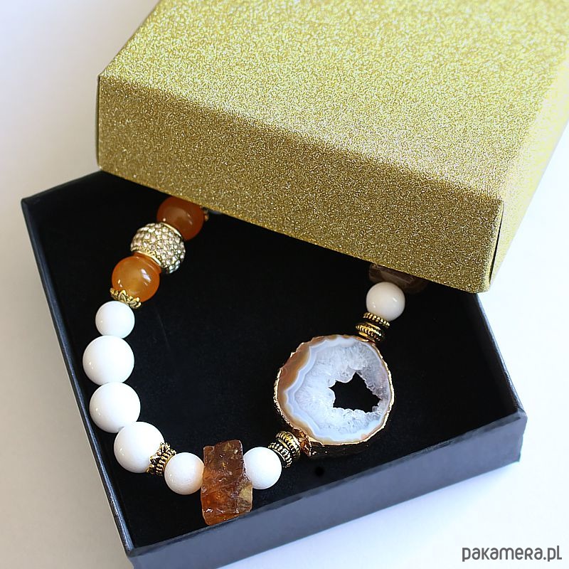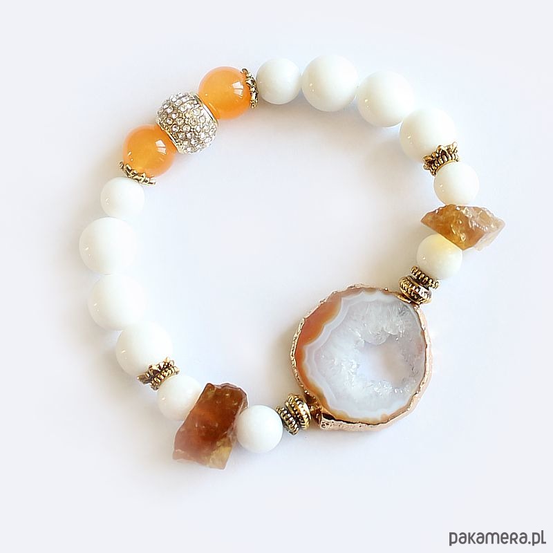 Elegancka energetyczna bransoletka energetyczna z unikatową druzą surowego agatu, białym jadeitem, surowym cytrynem i agatem ognistym. Oczyszczona, zregenerowana, napełniona energią czystego światła o najwyższej wibracji. ❤