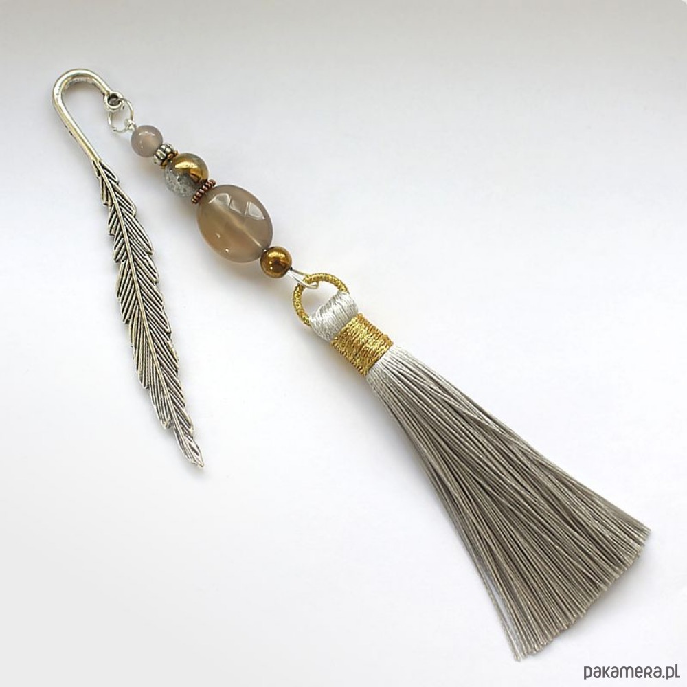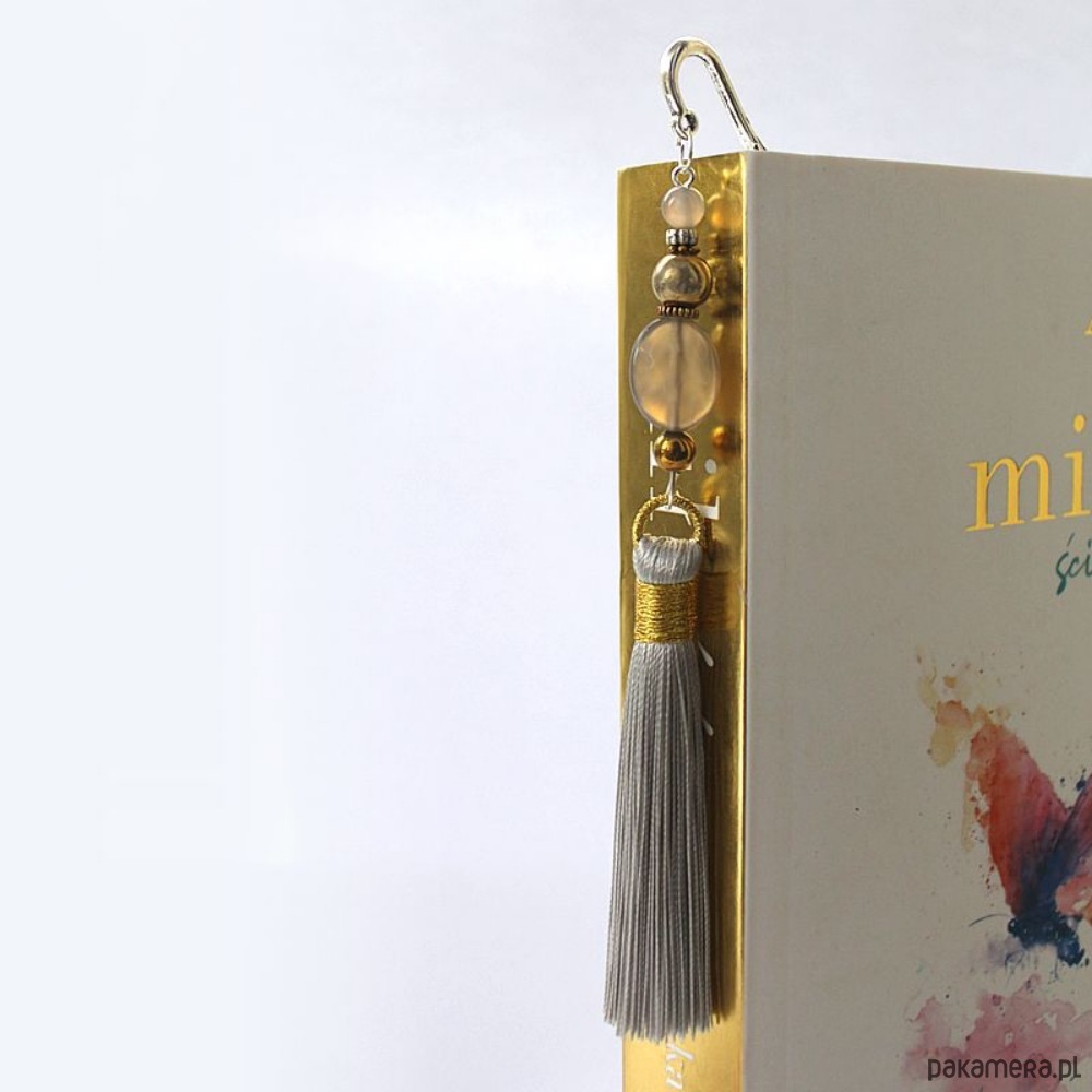 Elegancka etno zakładka do książki w odcieniu bieli i ecru.