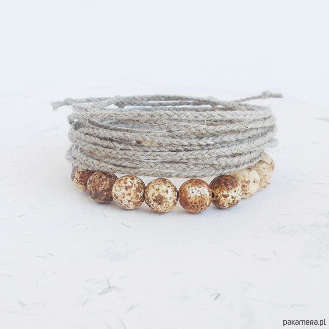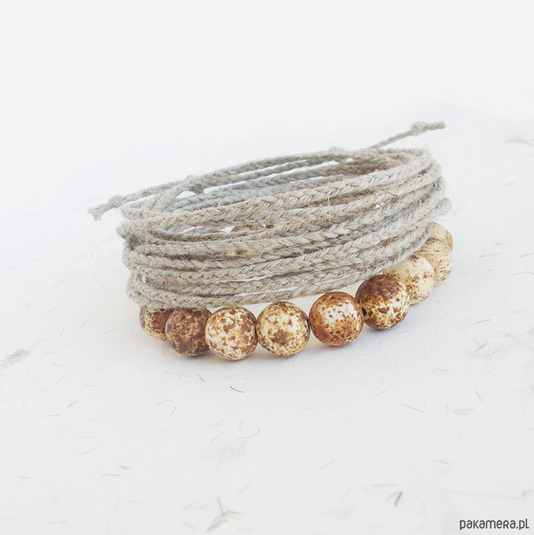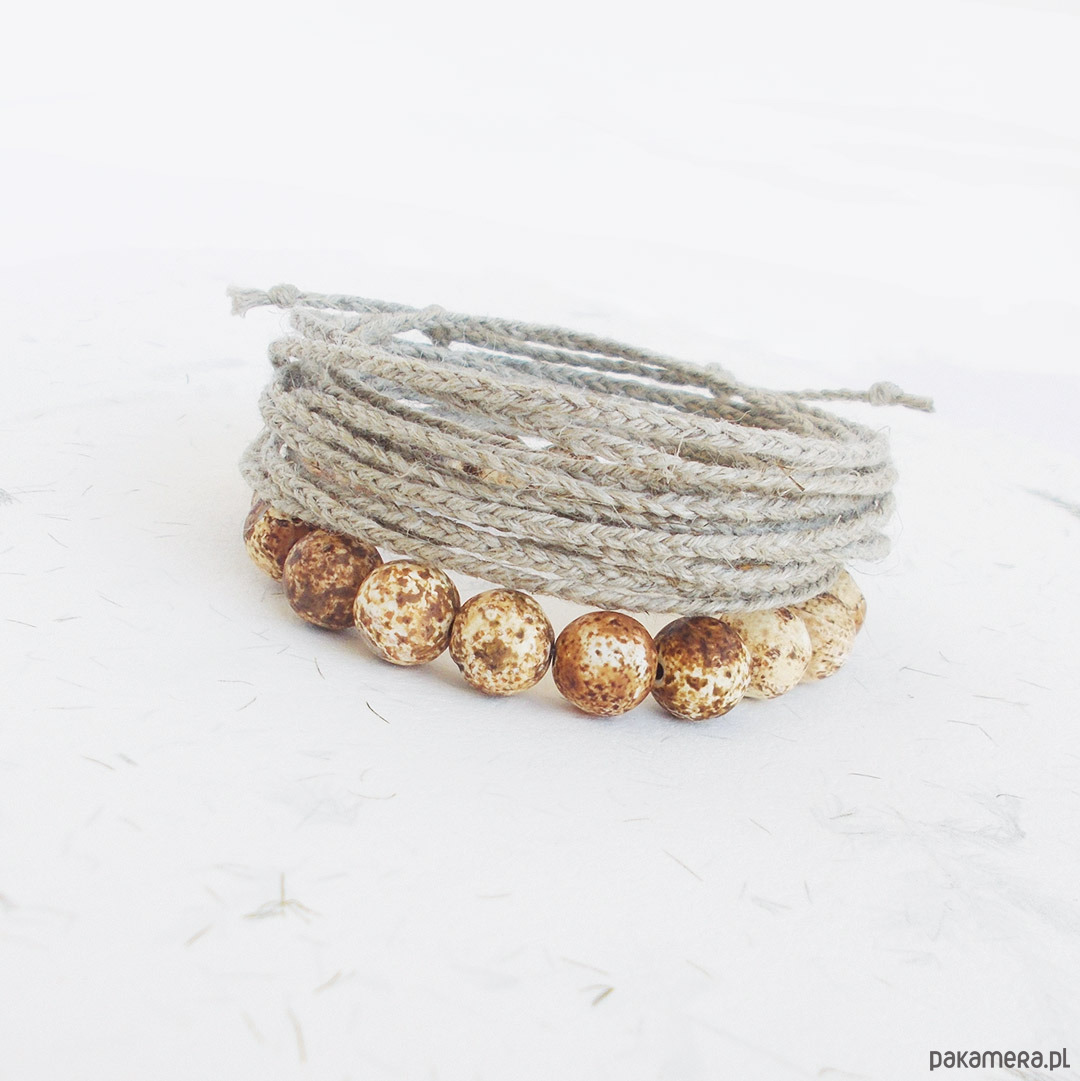 1. Wyplatana z lnianych nitek bransoletka wielowarstwowa (oplata nadgarstek 8-9 krotnie)