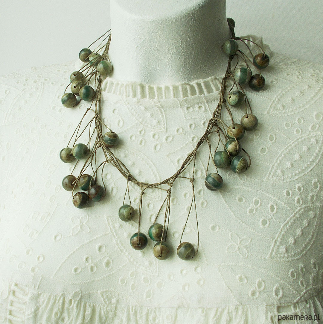 Oryginalny naszyjnik na bazie naturalnego lnu