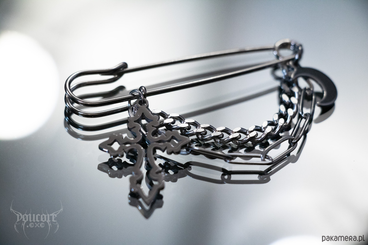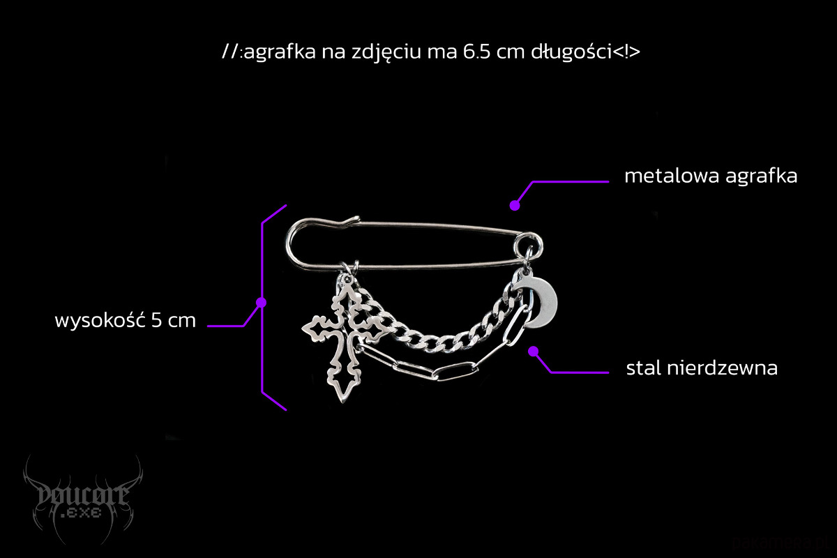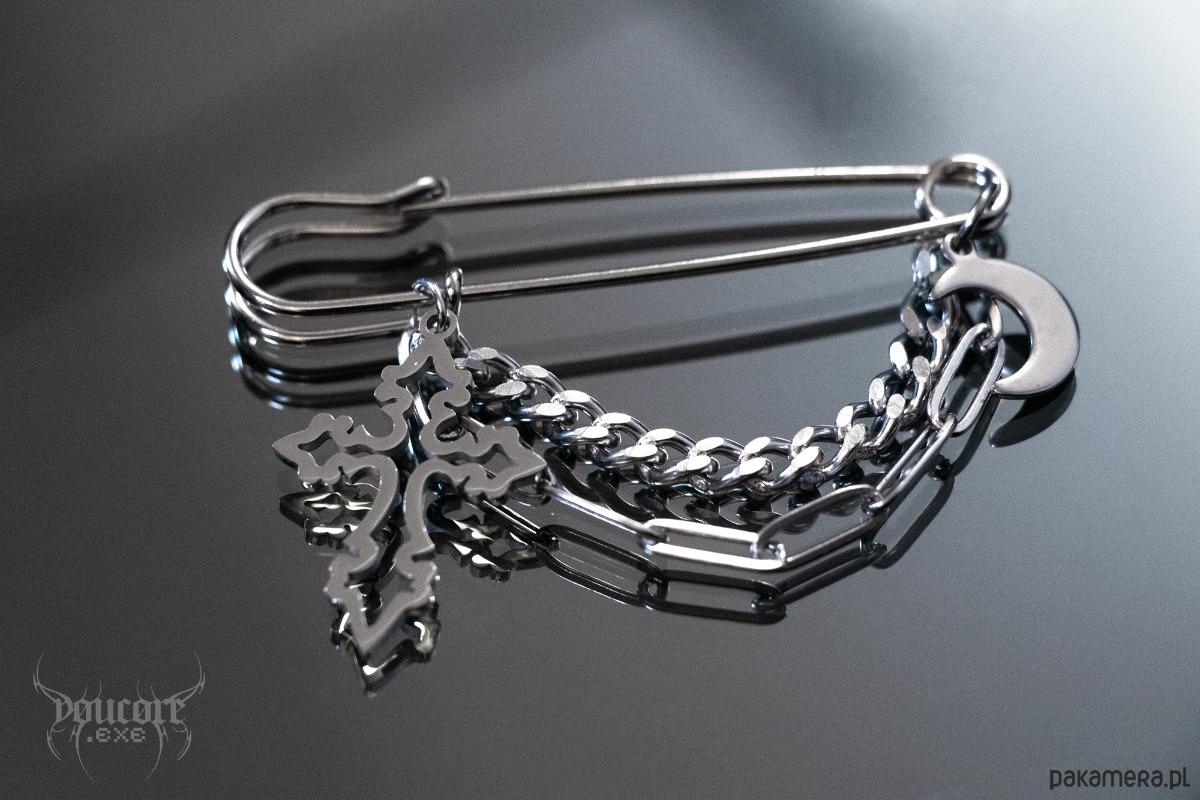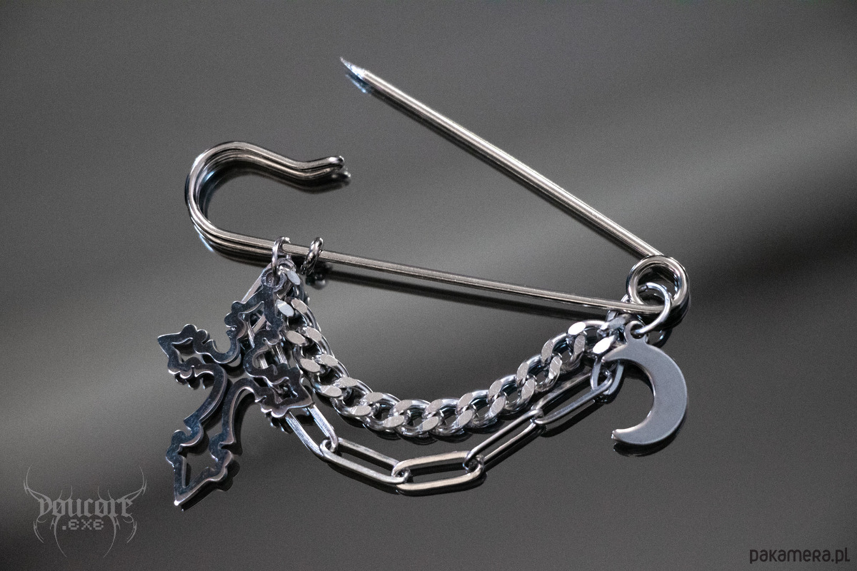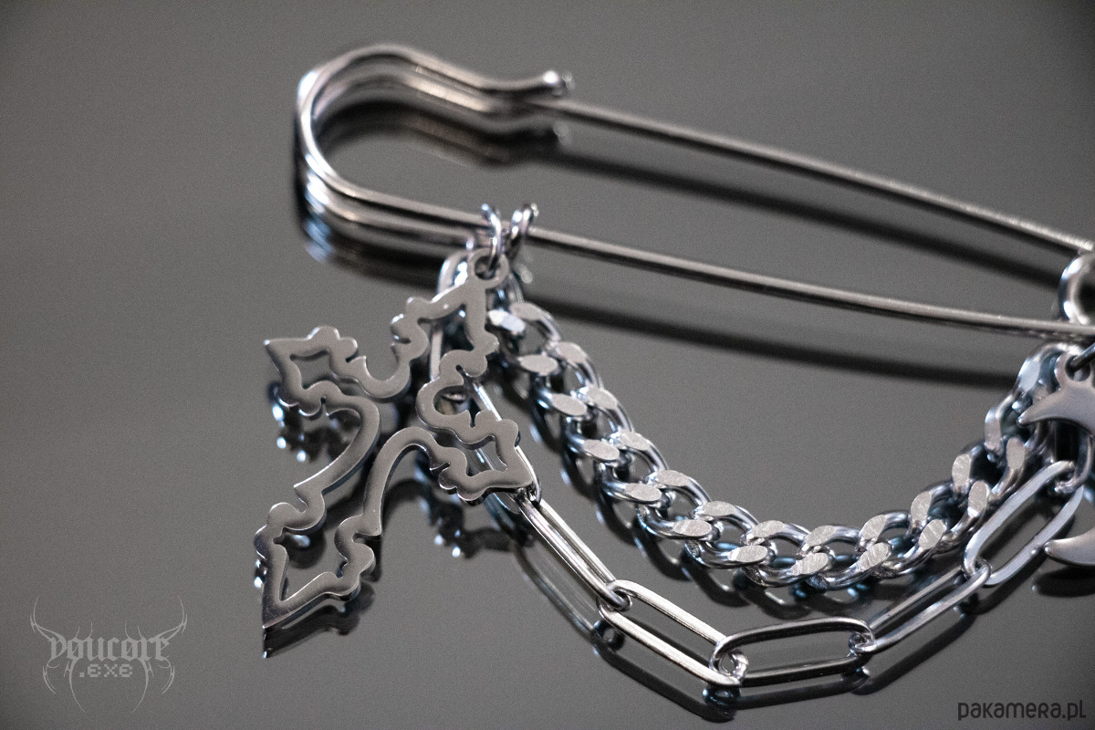 Agrafka z krzyżem i księżycem * stal nierdzewna * przypinka goth witch