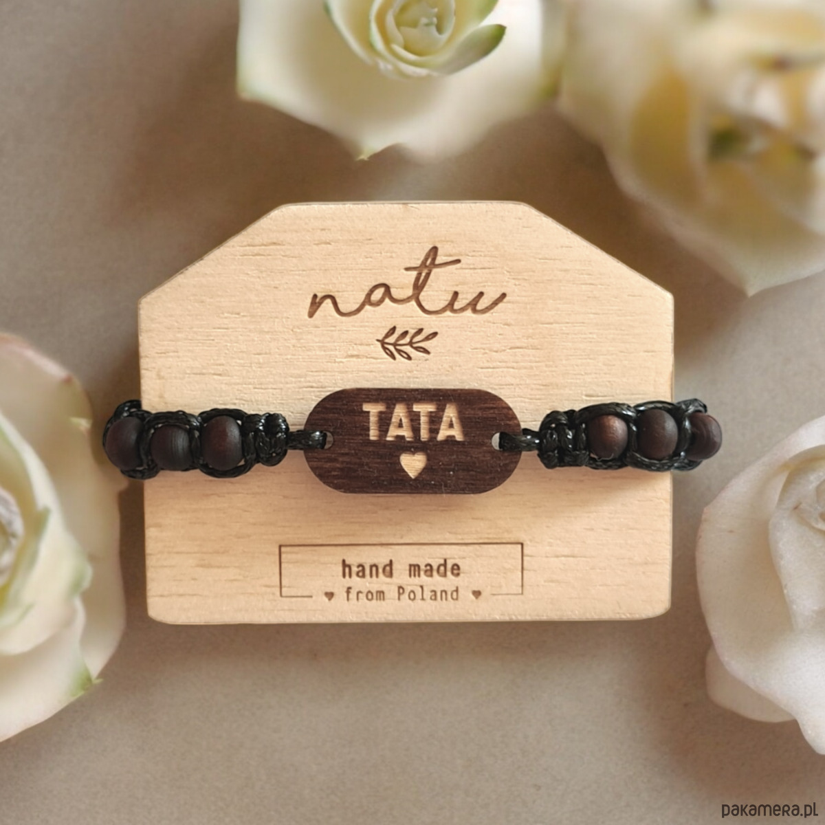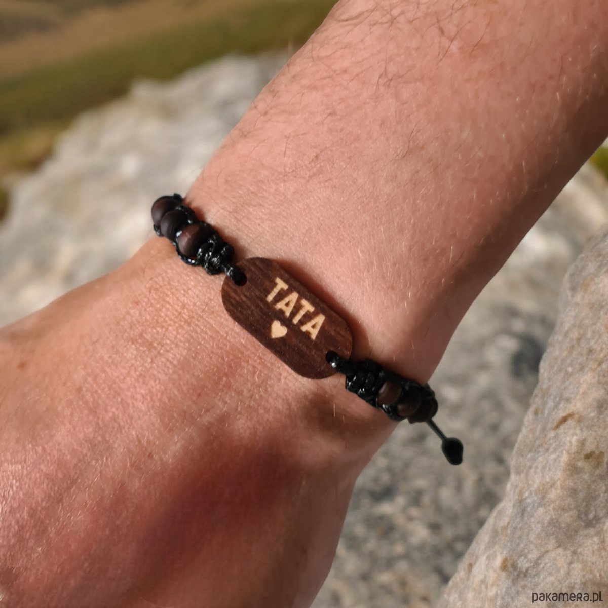 Ręcznie pleciona, naturalna bransoletka z grawerem.