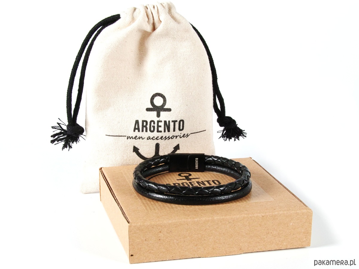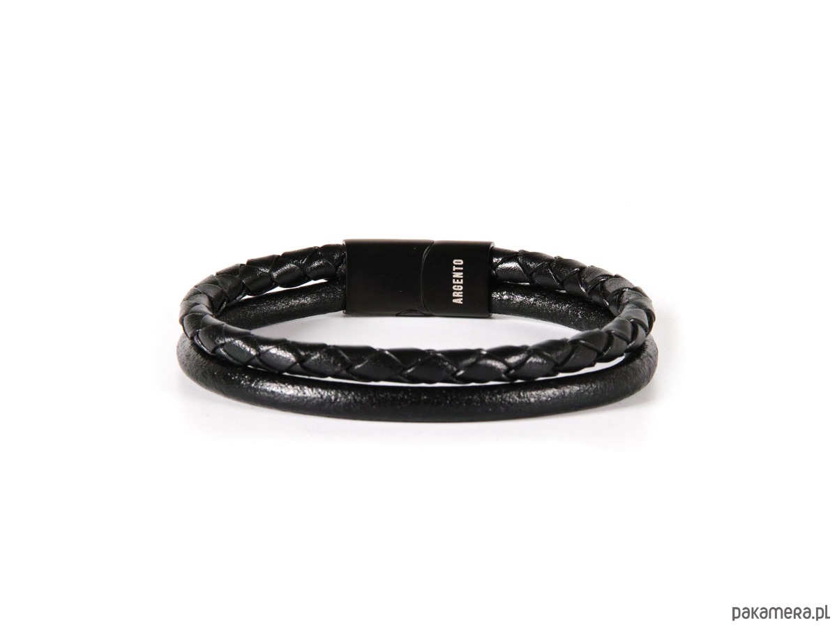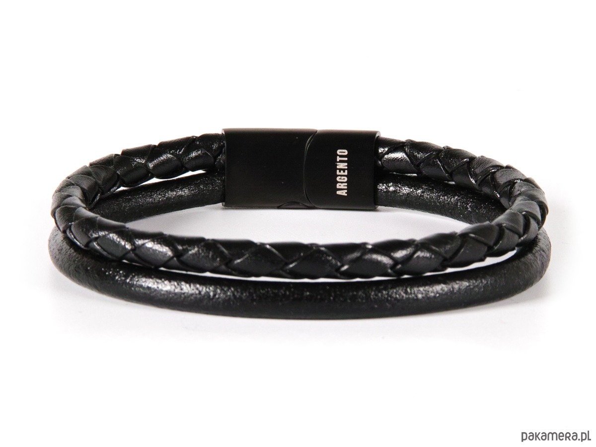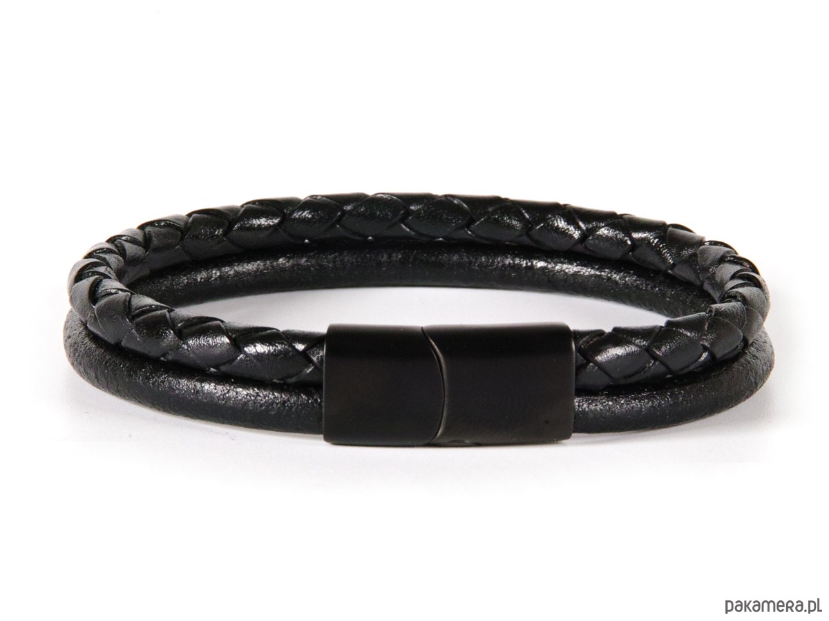 Modna bransoleta męska zrobiona z wysokogatunkowego rzemienia gładkiego i plecionego ze skóry naturalnej w kolorze czarnym. Grubość pojedynczego rzemienia 0,5 cm