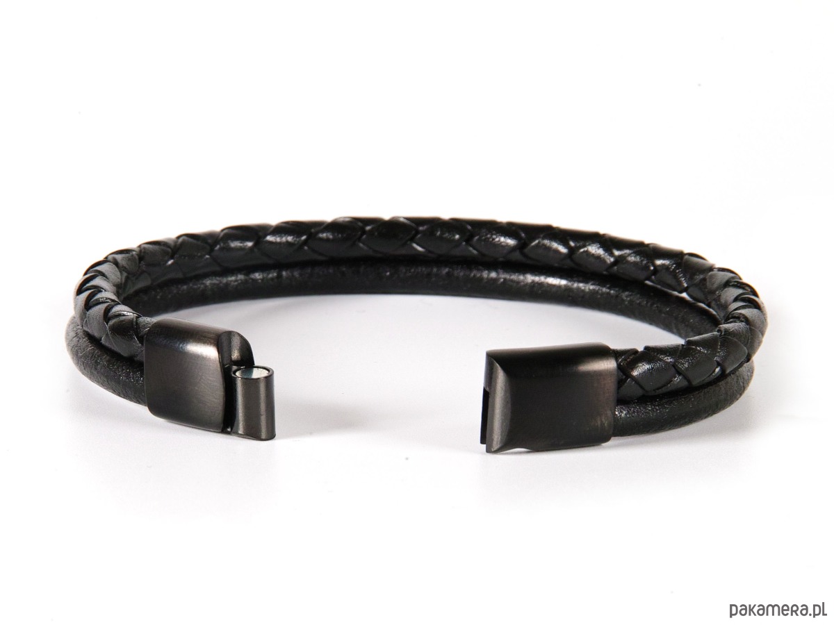 Bransoletka ma wygodne zapięcie ze stali szlachetnej czarne chromowane.