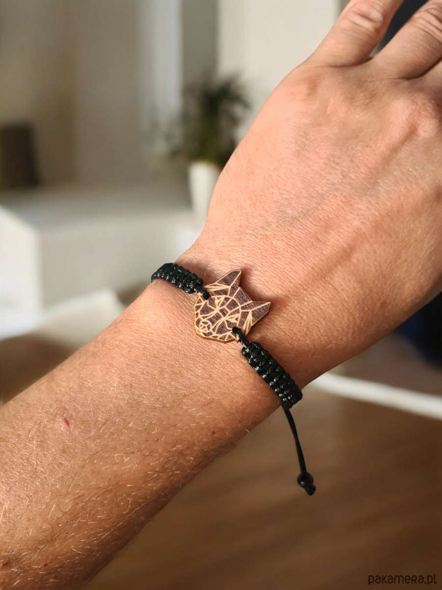 Obwód bransoletki to około 25 cm, możemy wykonać dłuższą lub krótszą, wystarczy napisać :) Sznurek jest precyzyjnie zakończony drewnianymi koralikami.