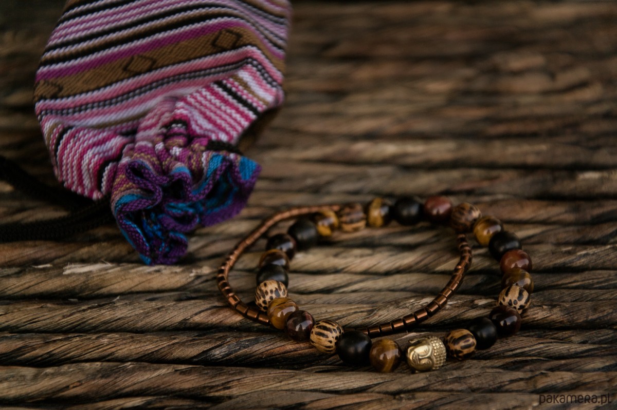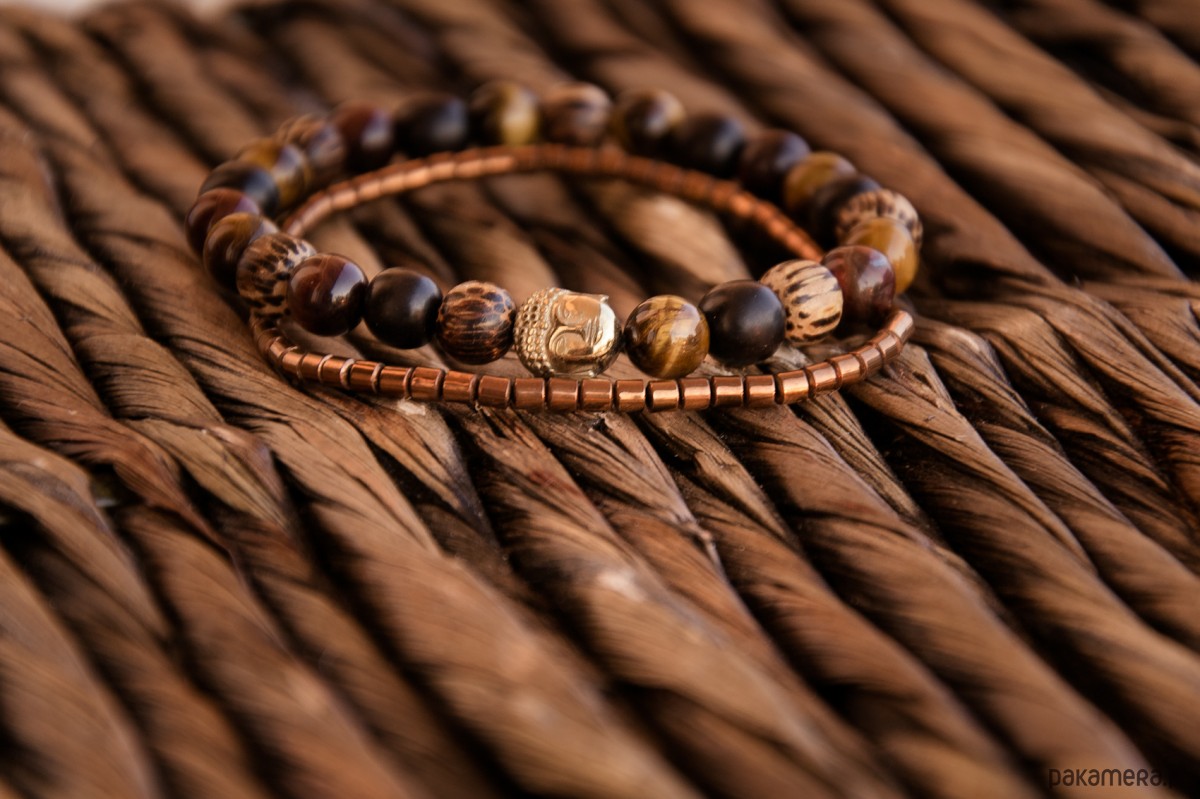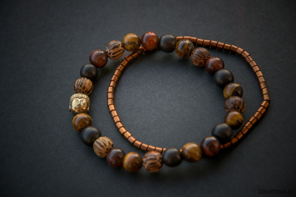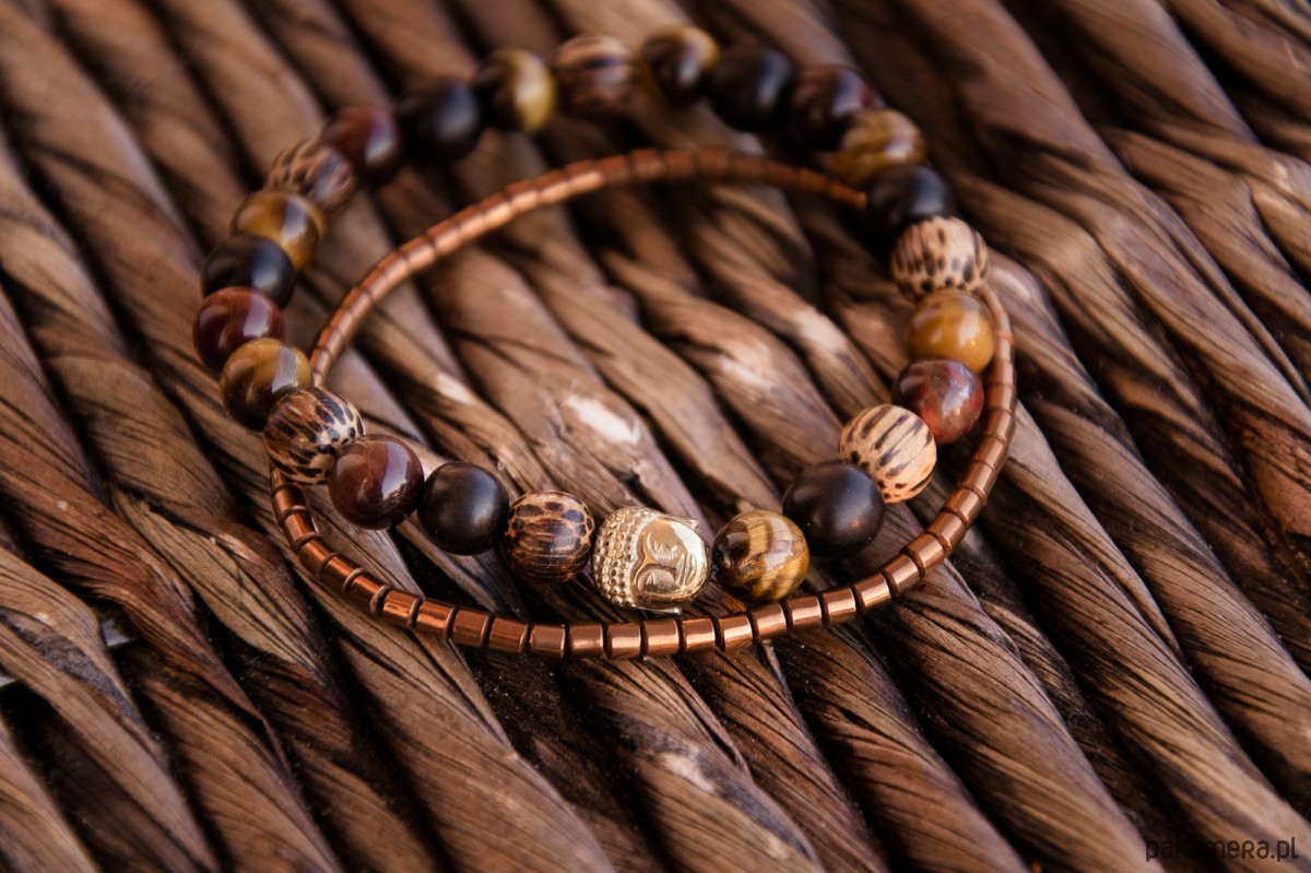 MĘSKA bransoletka BANGKOK złoty Budda w drewnie i kwarcu