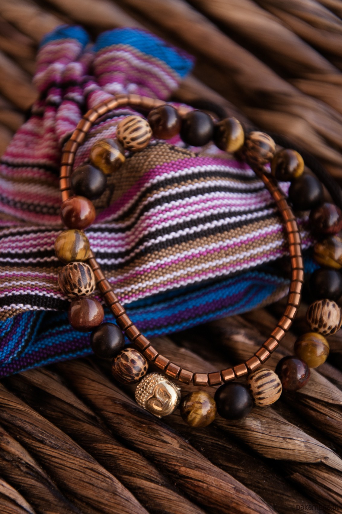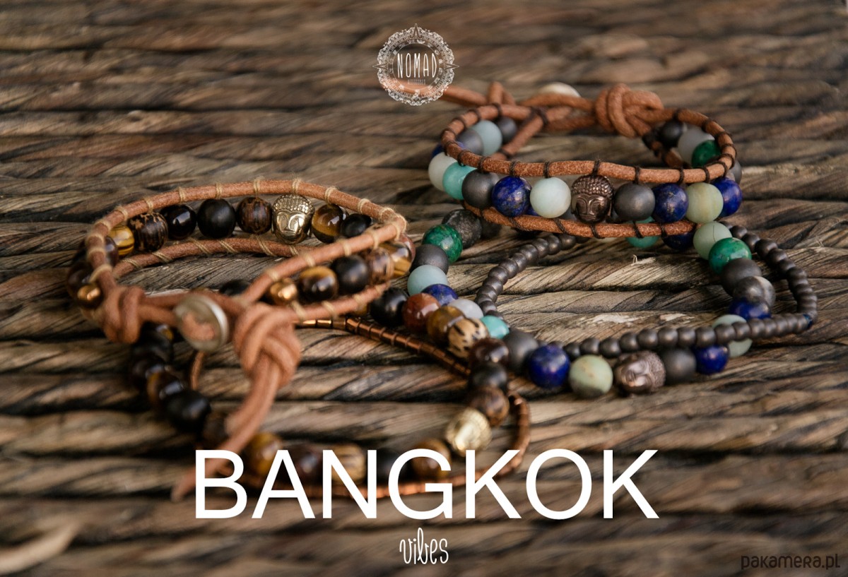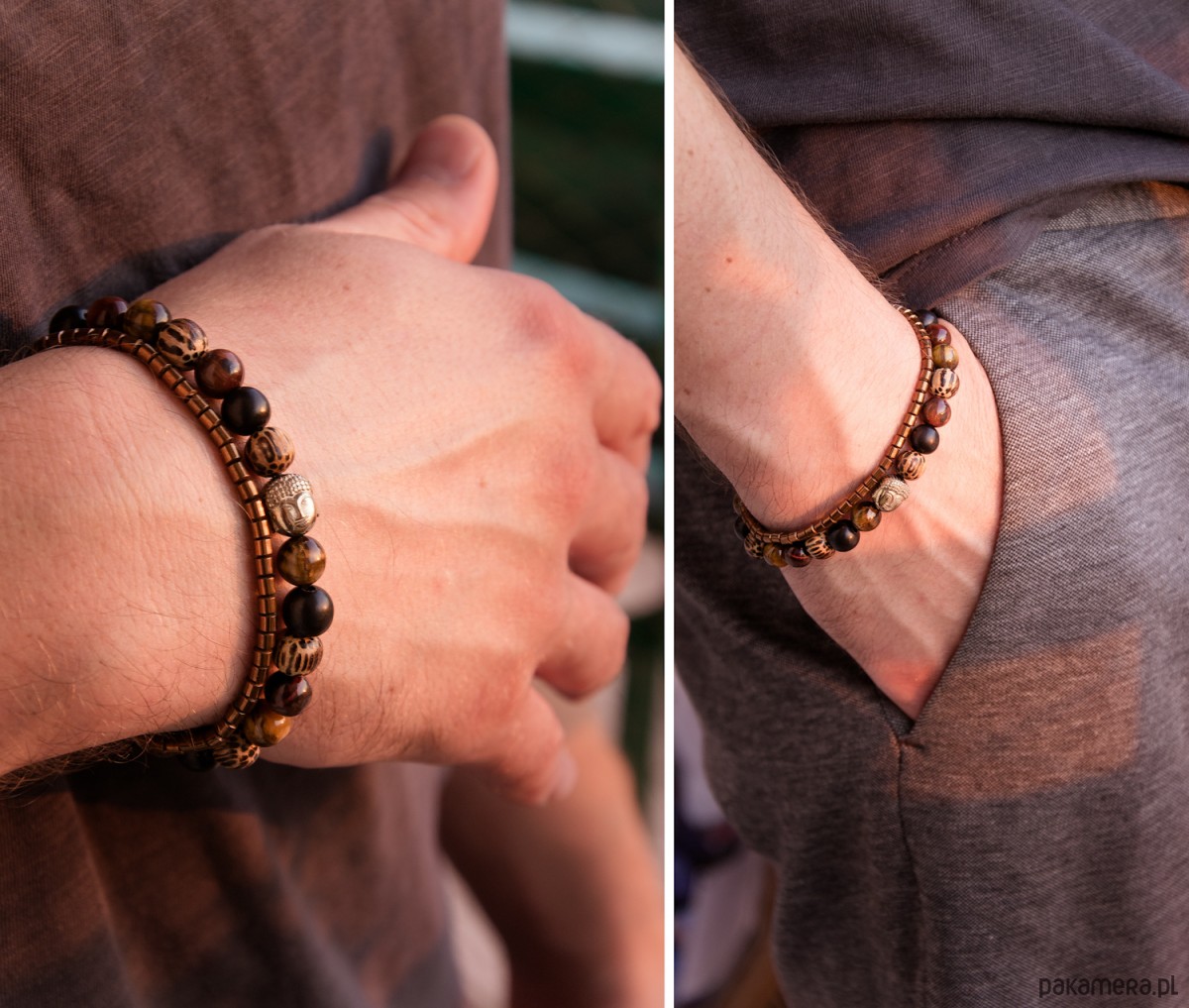 MĘSKA bransoletka BANGKOK złoty Budda w drewnie i kwarcu
