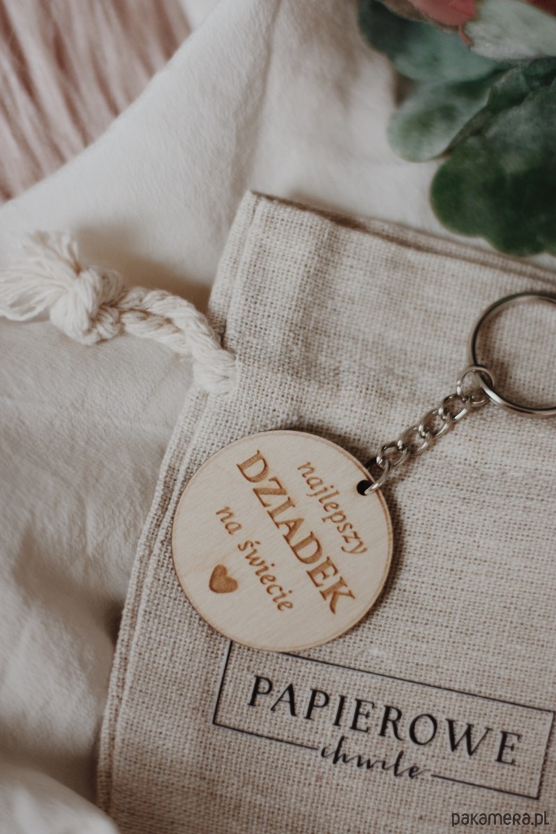 Ręcznie robiony brelok z napisem “Najlepszy Dziadek na świecie”. Idealnie sprawdzi się jako ozdoba do kluczy, doskonały pomysł na prezent na Dzień Dziadka.
