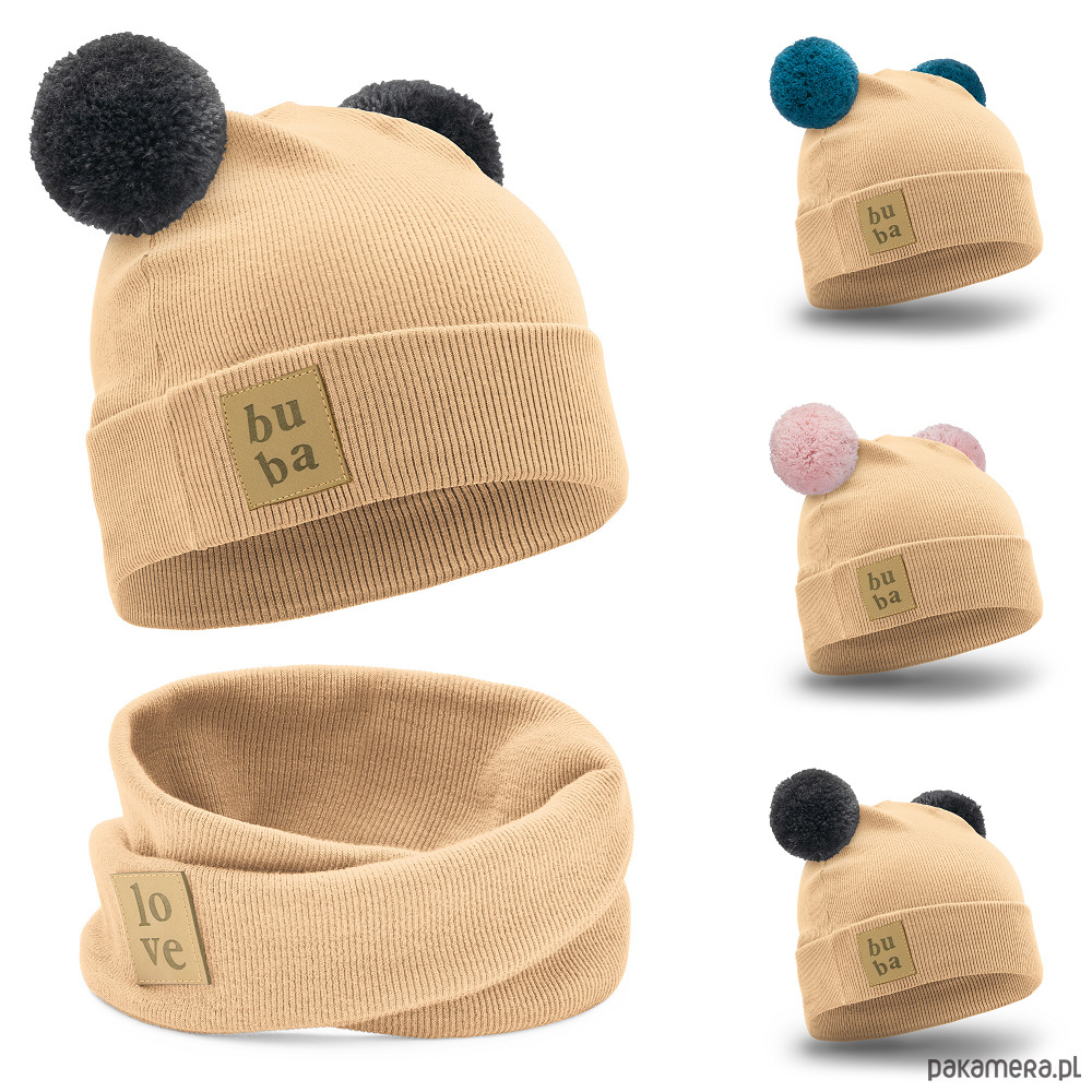Czapka jest o klasycznym kroju z wywinięciem.Dodatkowo posiada dwa pompony w kilku wersjach kolorystycznych, które dodają jej uroku. Skręcony komin zapewnia łatwiejsze układanie.
